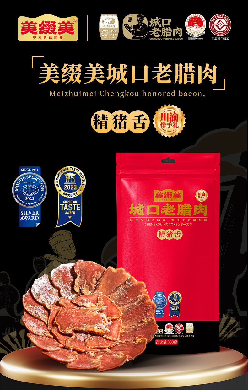 美缀美 城口老腊肉(精猪舌)300g 地标产品 非遗工艺 农家土猪