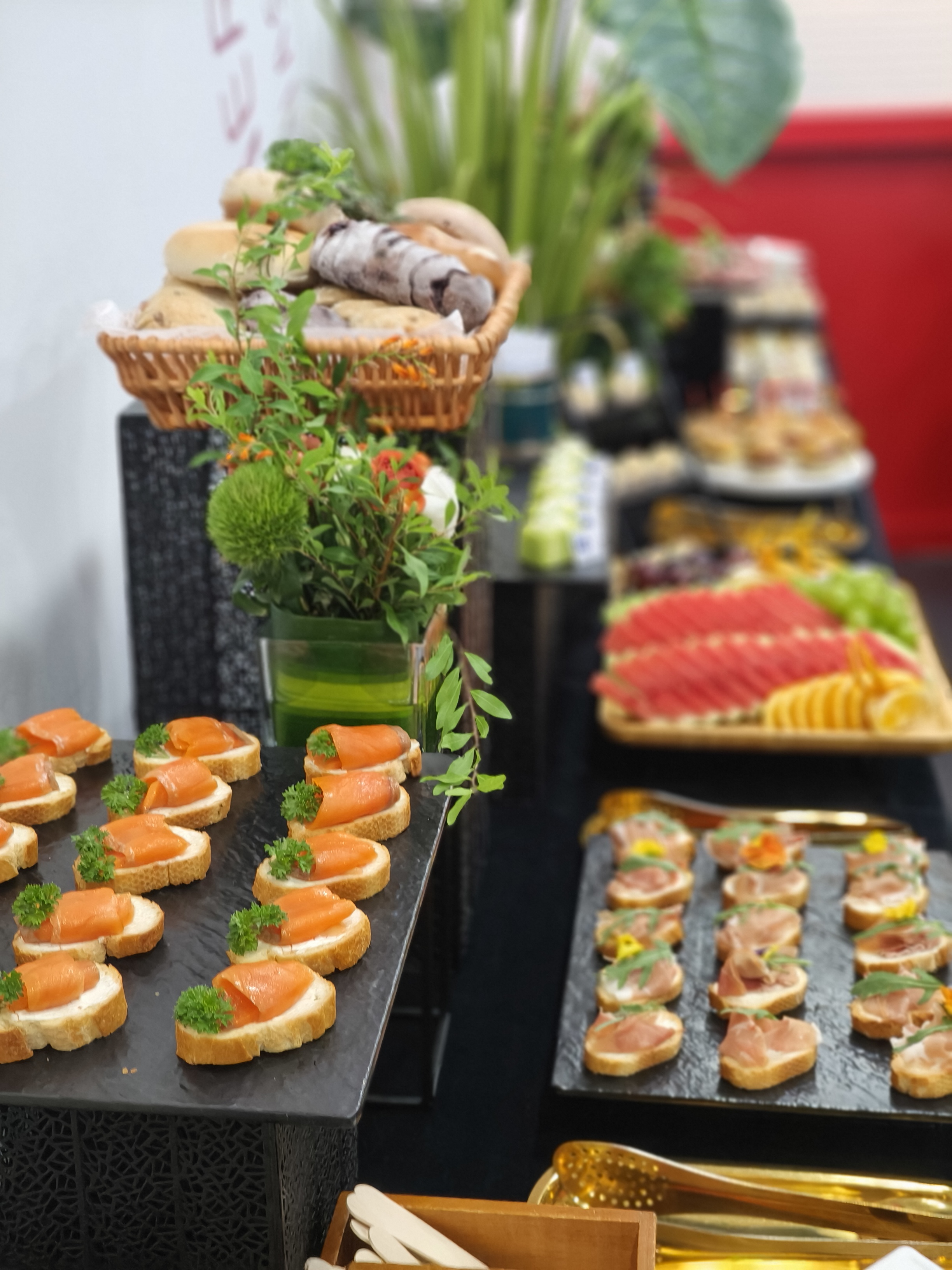 【甜久荟】欧式冷餐会/茶歇 适合餐点时间的冷餐会/茶歇 5种咸点(含纯肉拼盘) 3种甜点 水果和品牌软饮 适合30人起的活动 含配送上门摆台道具和现场服务 提前一周预定 急单请询客服 价格限上海含郊区