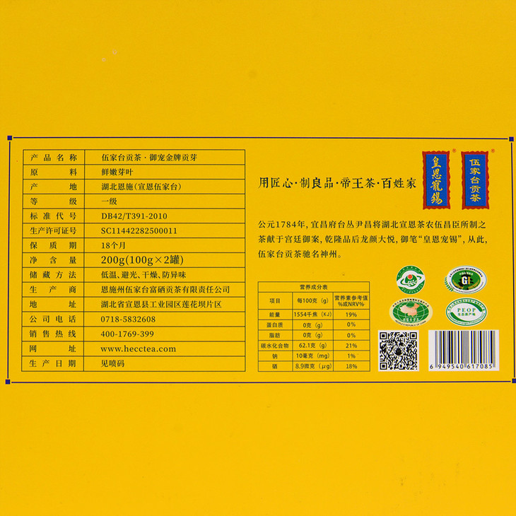 【严选】伍家台金牌贡芽(黄盒装)200g/盒(厂家直发)