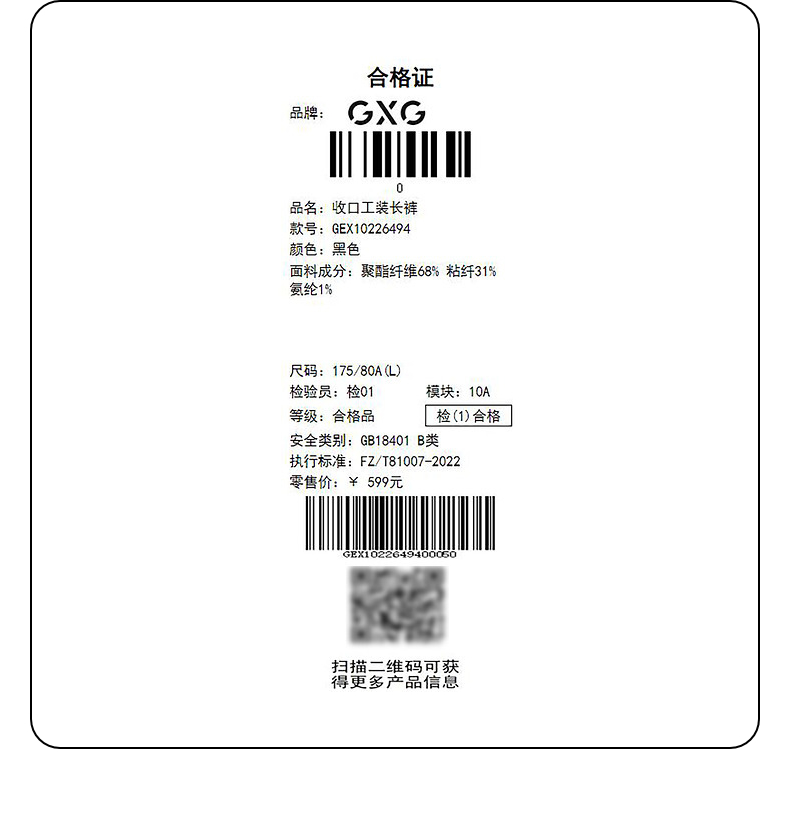 GXG男装 黑色舒适束脚工装长裤 热卖GEX10226494