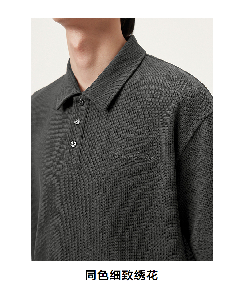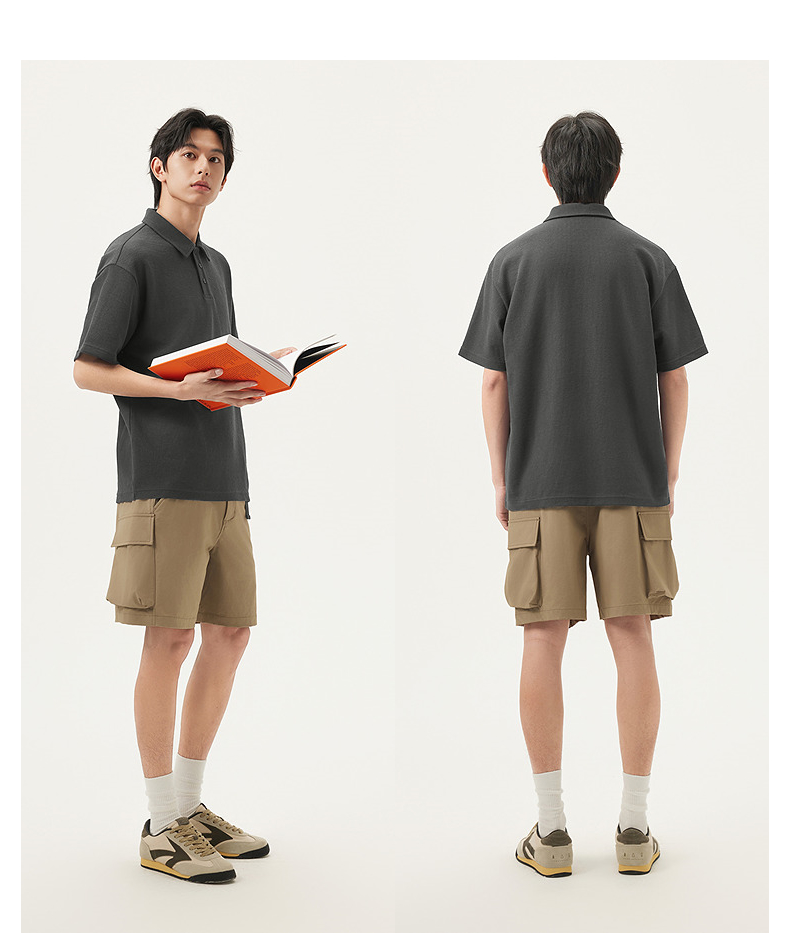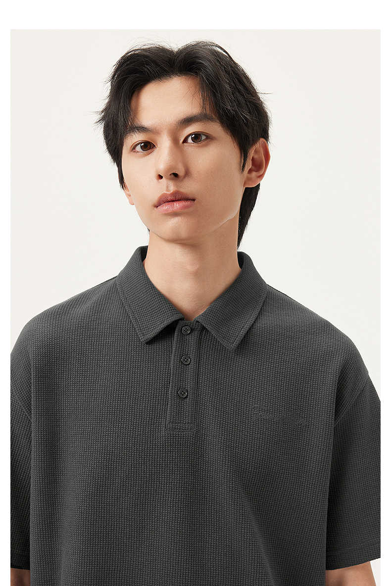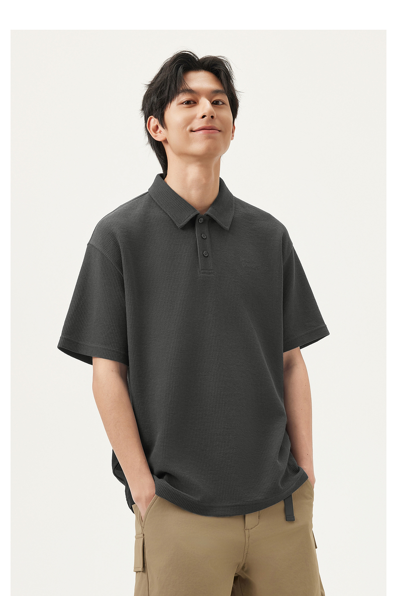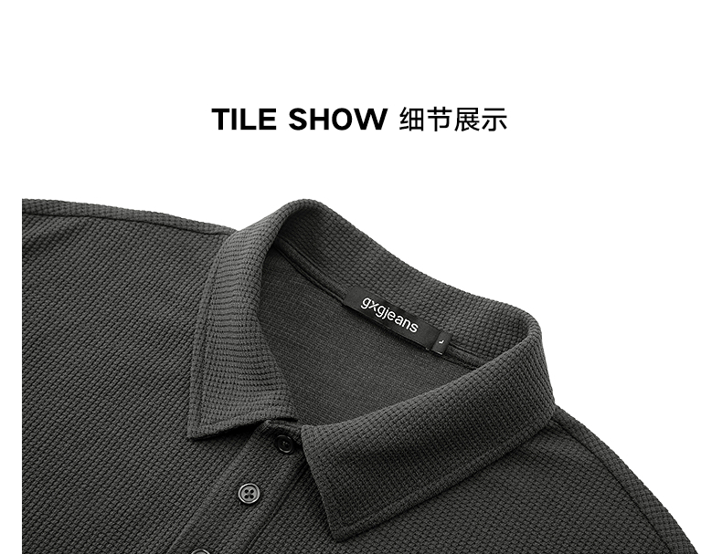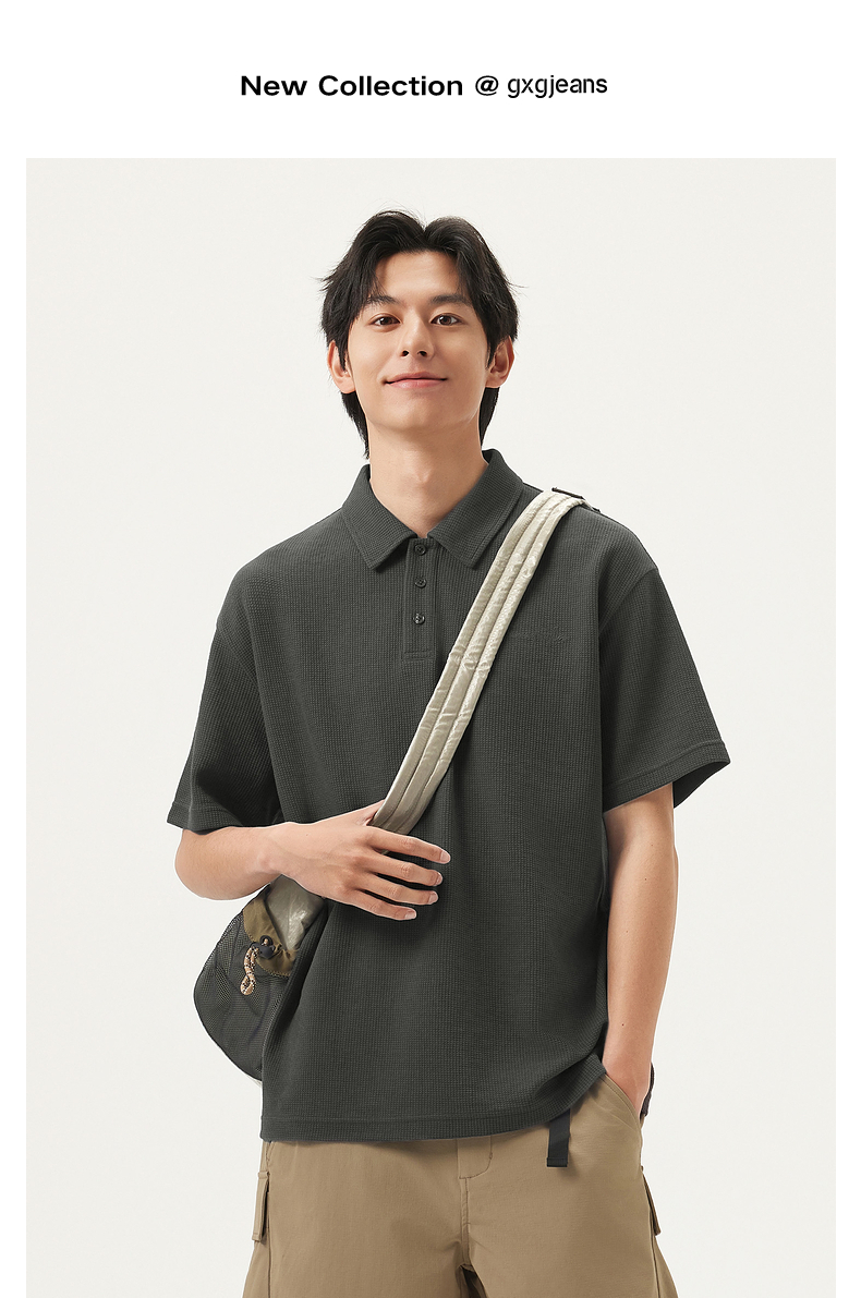 gxg.jeans男装 深灰肌理面料简约商务翻领短袖POLO衫男 25夏热卖