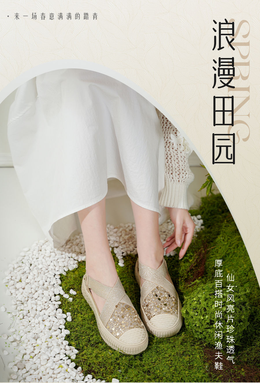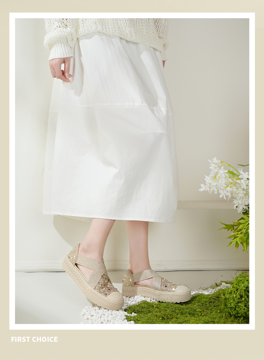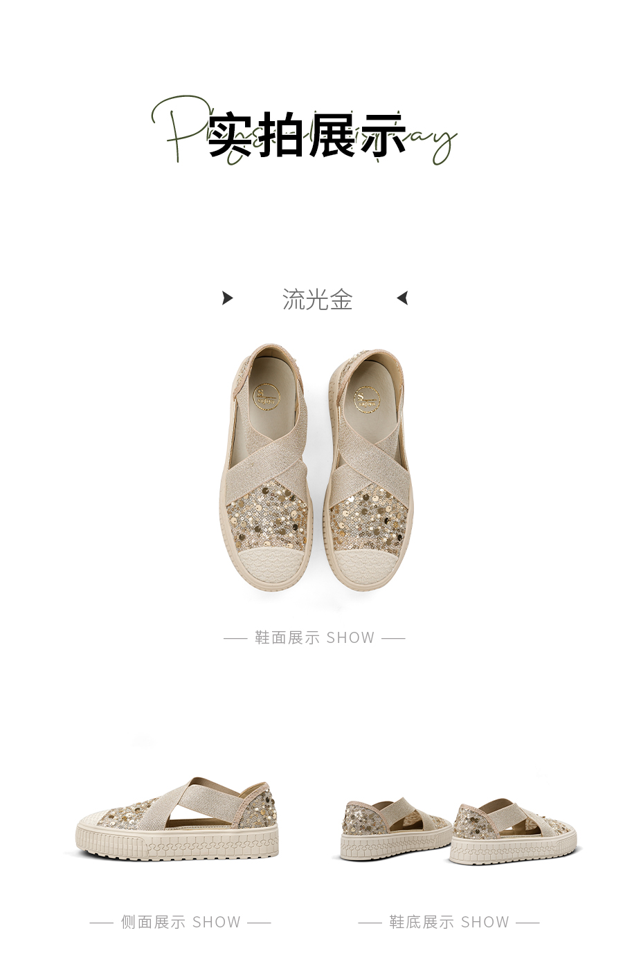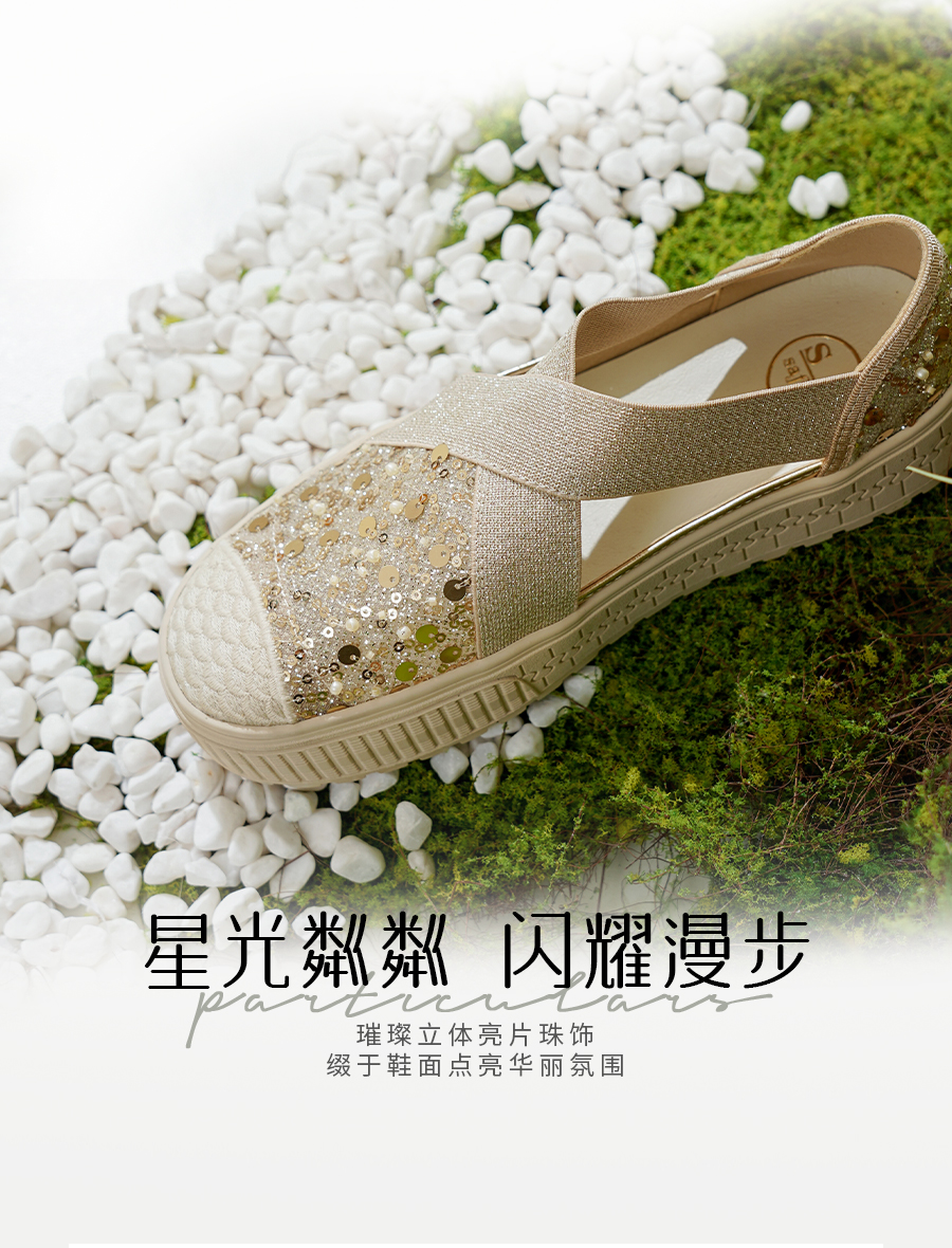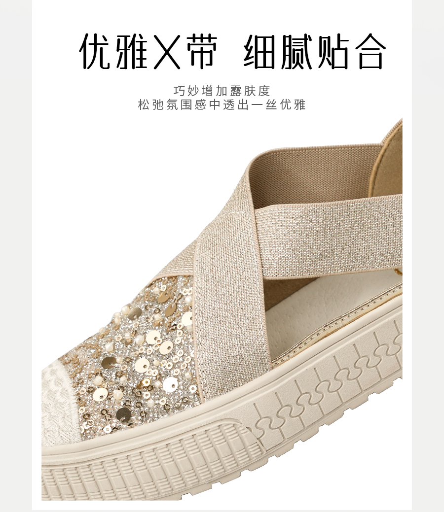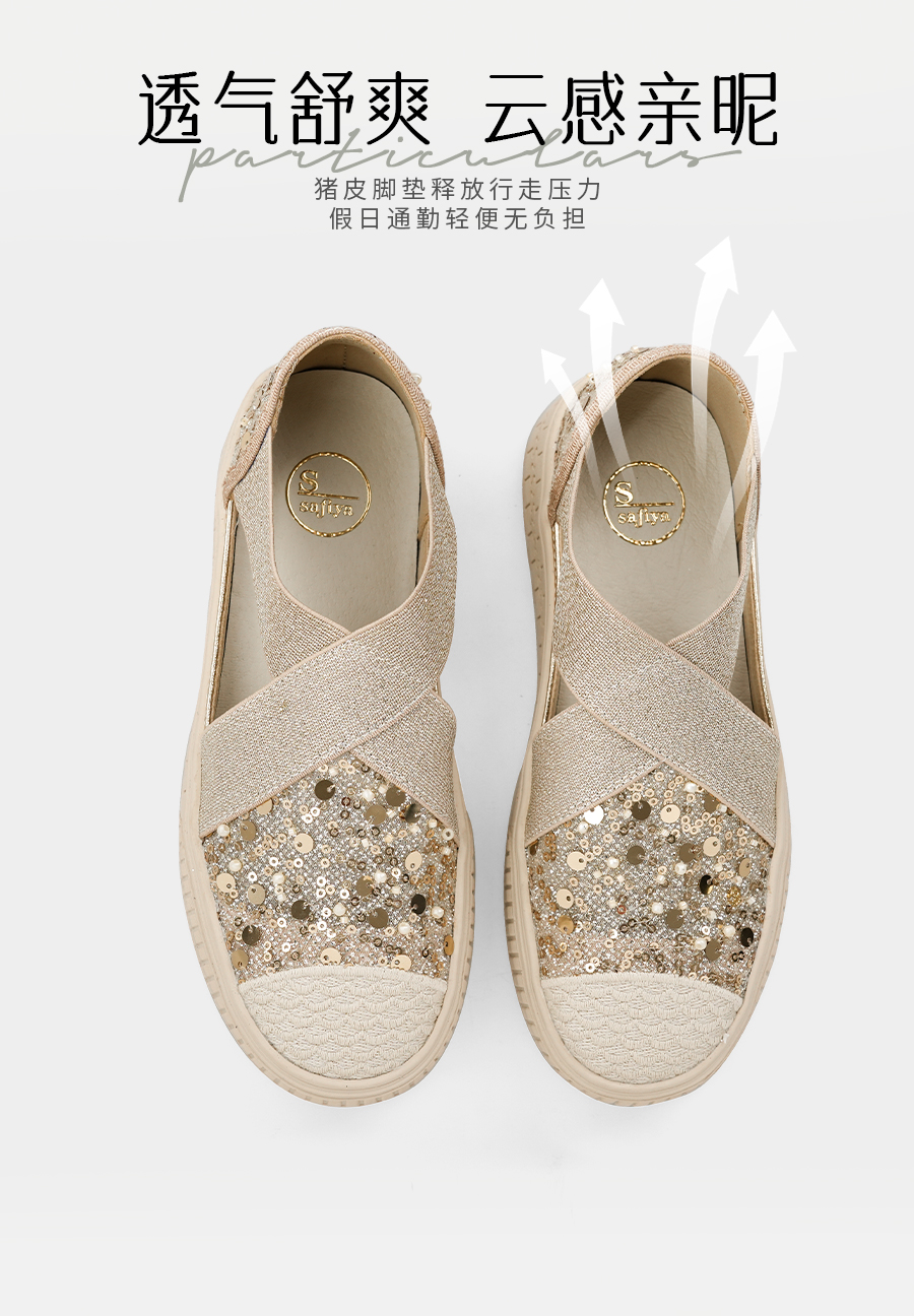 预售7天|Safiya/索菲娅2025仙女风亮片珍珠透气厚底百搭时尚休闲渔夫鞋SFD3112406