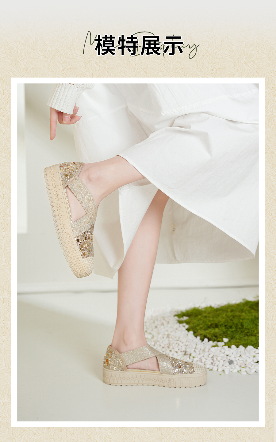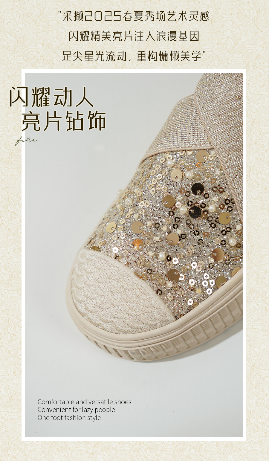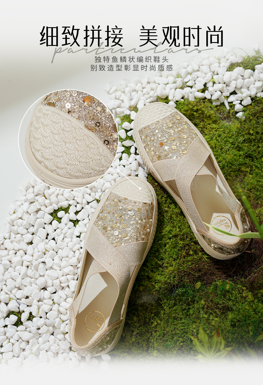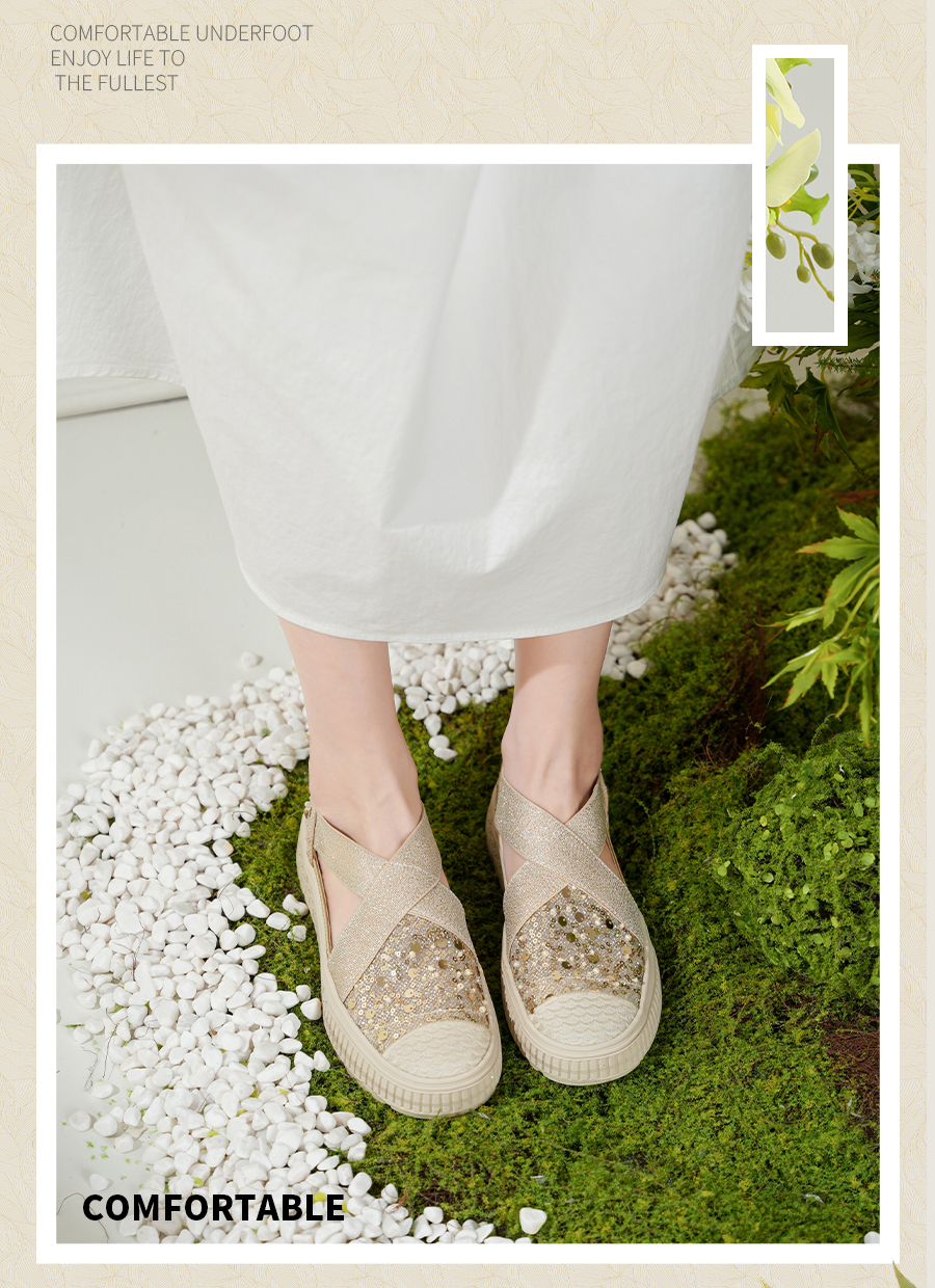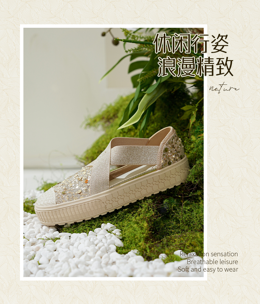 预售7天|Safiya/索菲娅2025仙女风亮片珍珠透气厚底百搭时尚休闲渔夫鞋SFD3112406