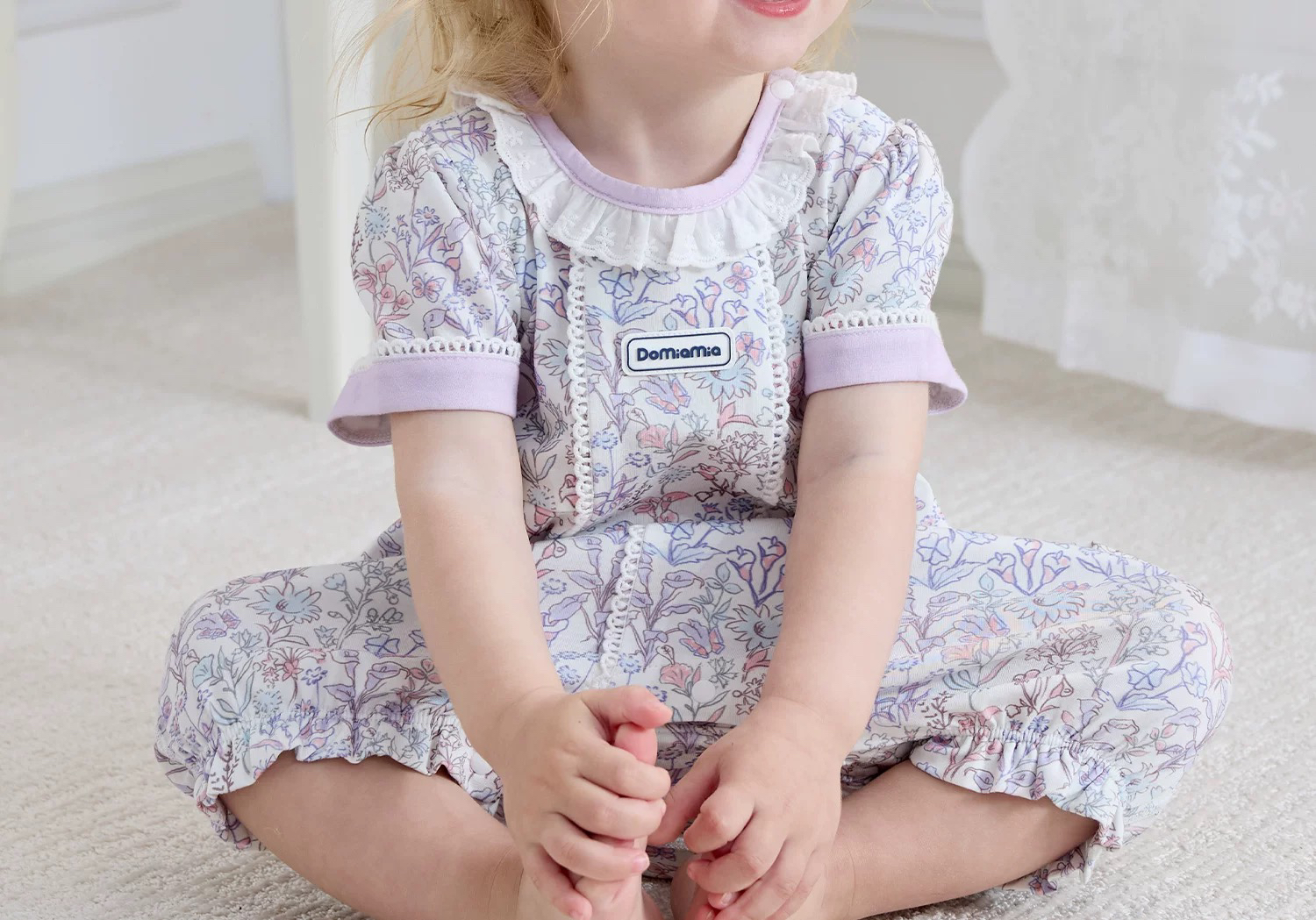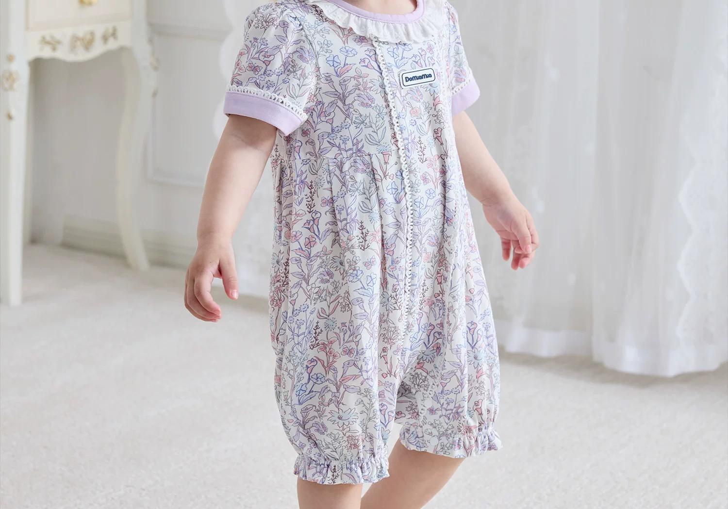 Domiamia 针织短袖花边领爬服