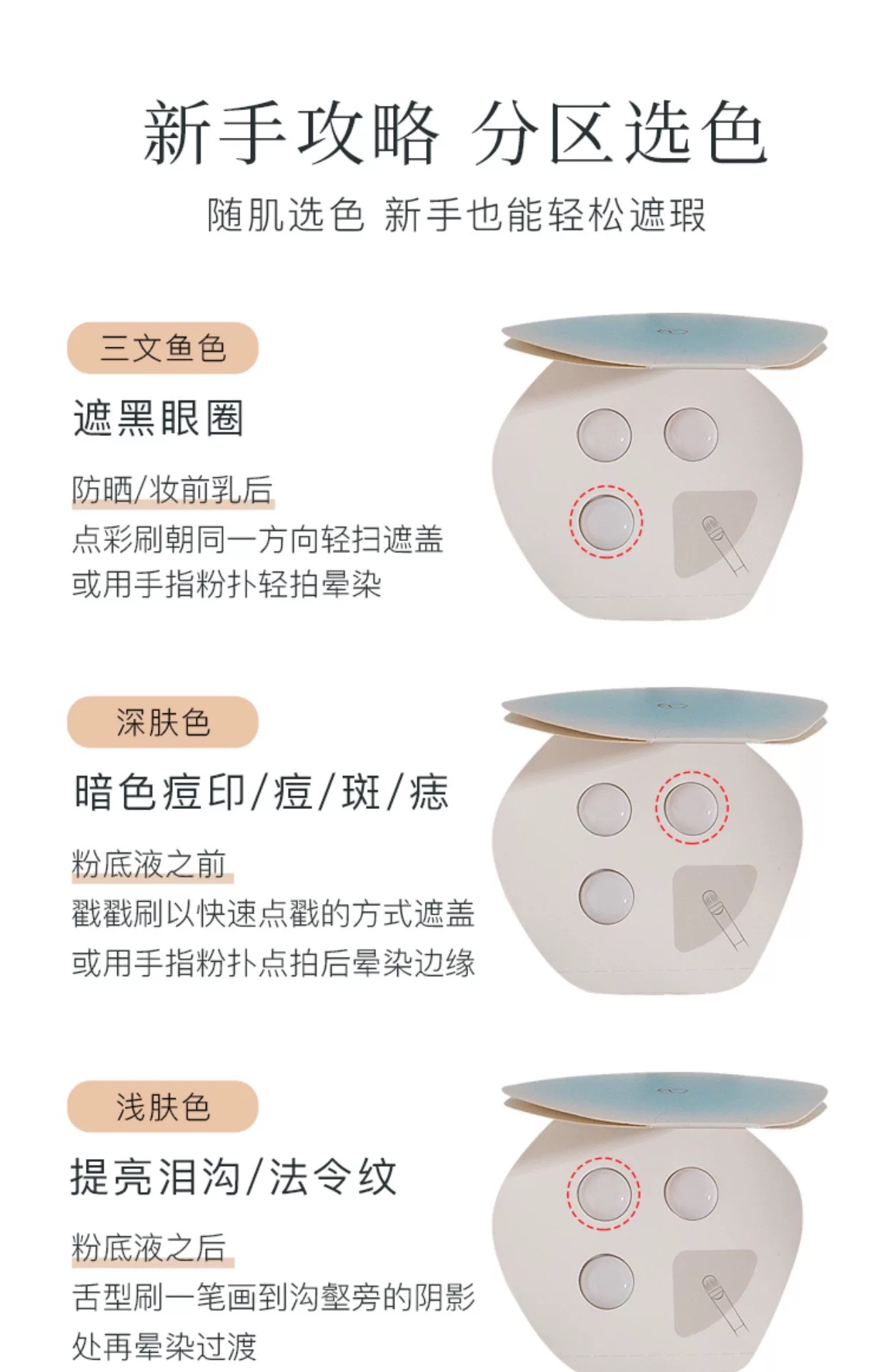 彩棠TIMAGE三色遮瑕盘遮瑕膏遮斑点脸部痘印提亮泪沟