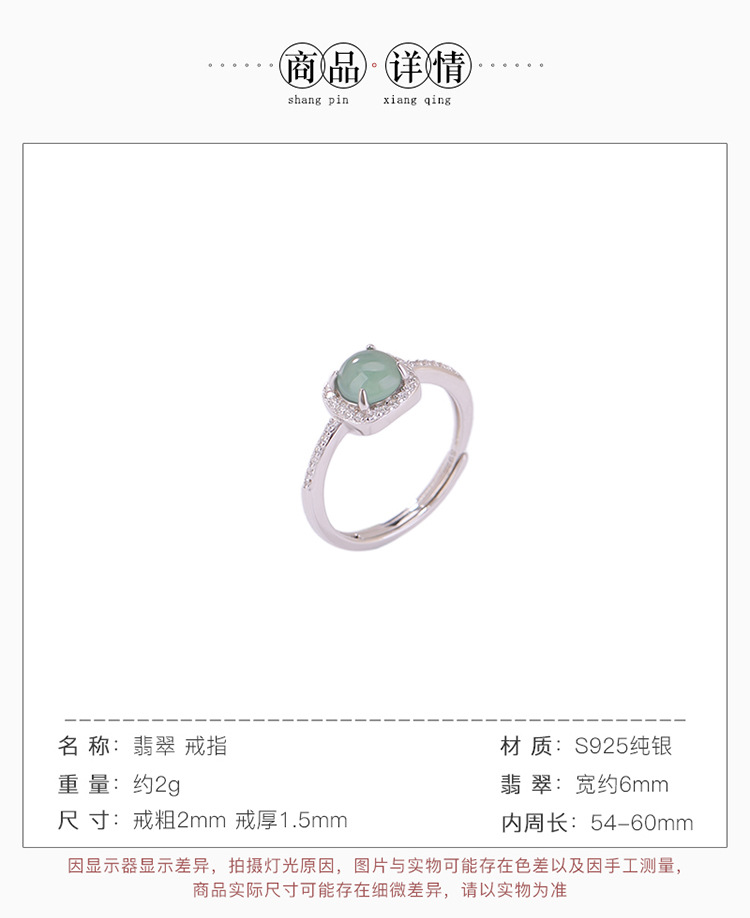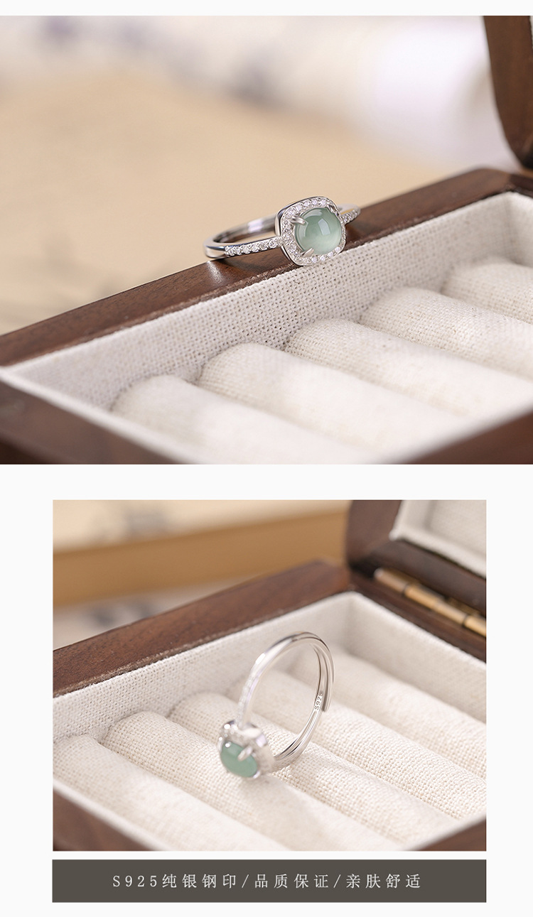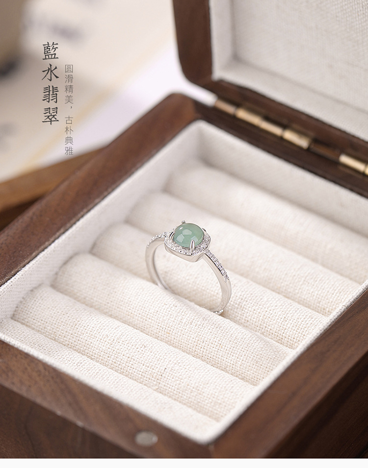 【浅梦】S925纯银蓝水翡翠圆珠开口戒指【CW-JZ06818】