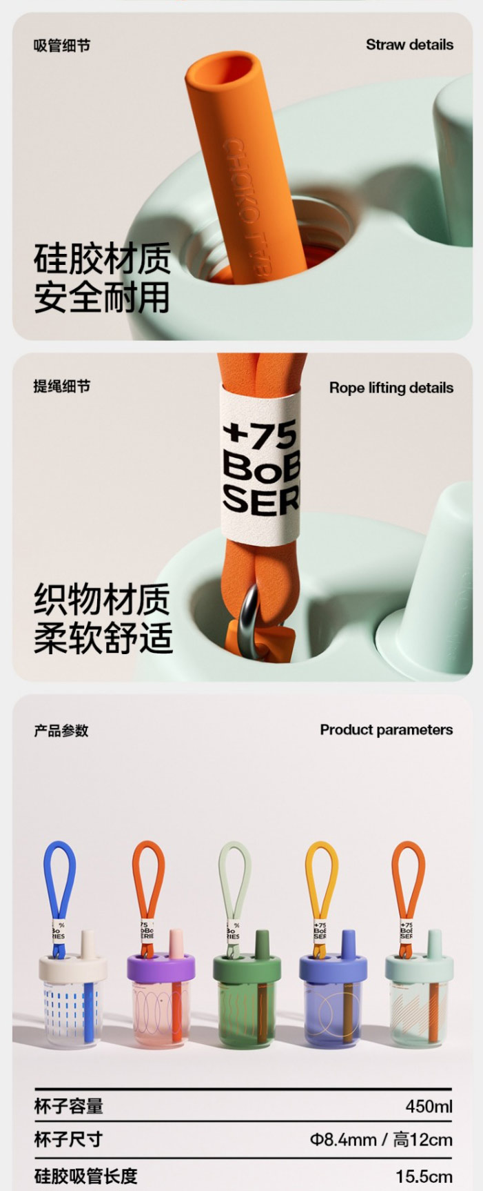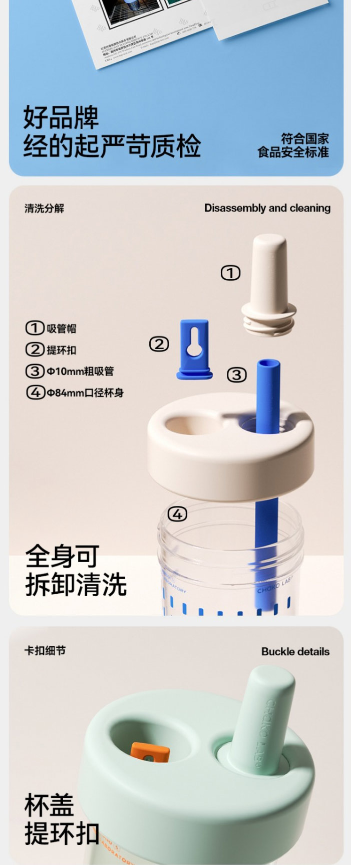 【chakolab】随行吸管杯大容量女夏高颜值便携咖啡奶茶大肚水杯bobo杯