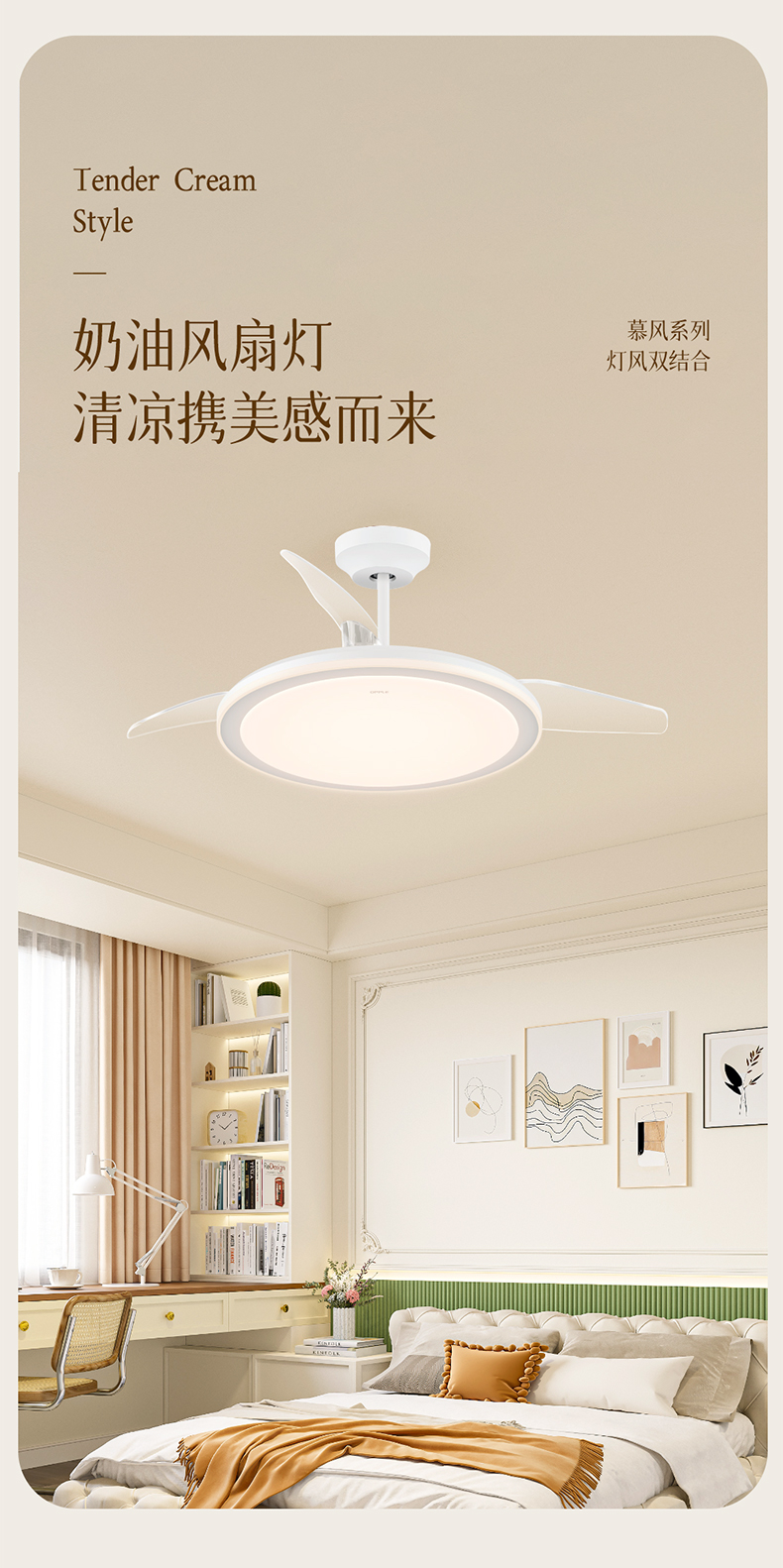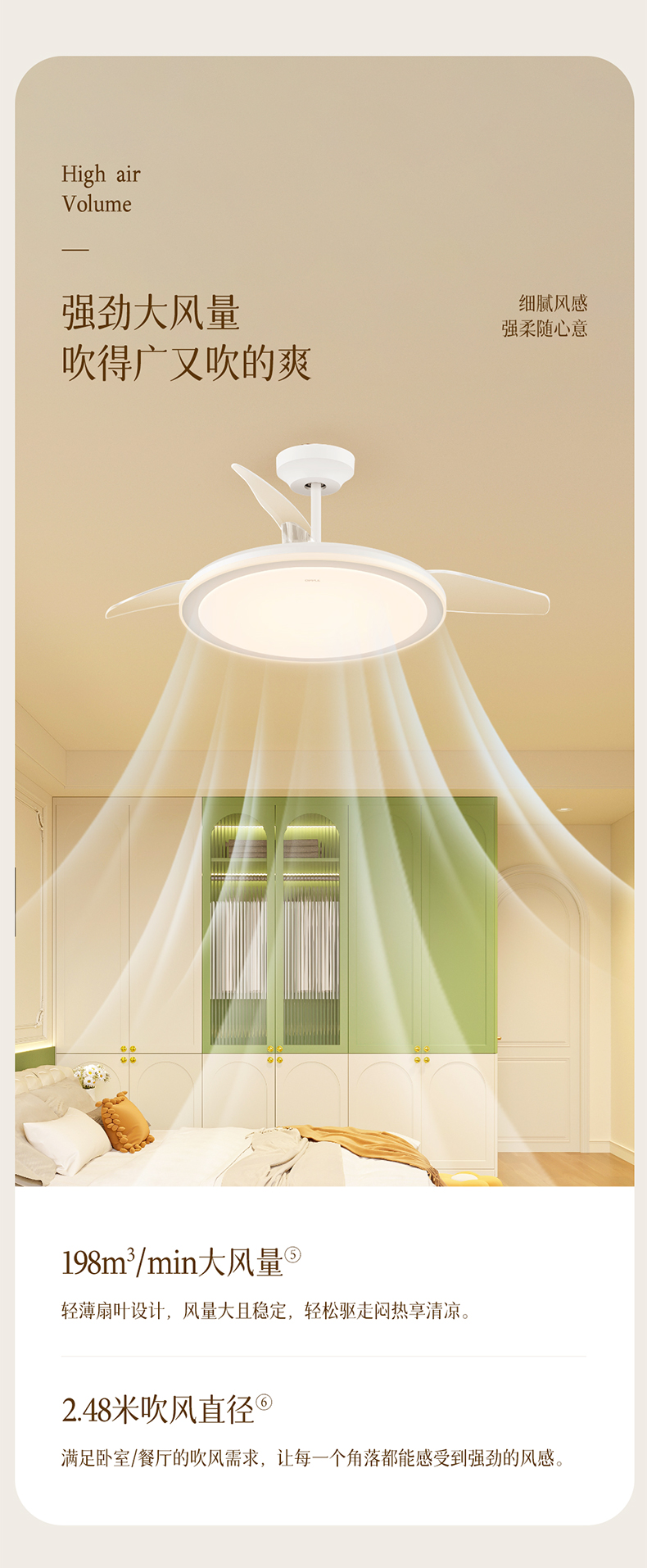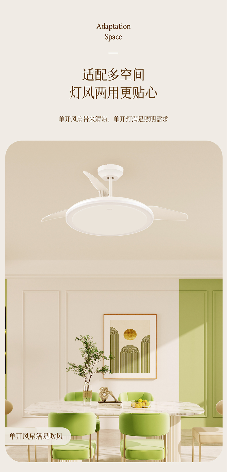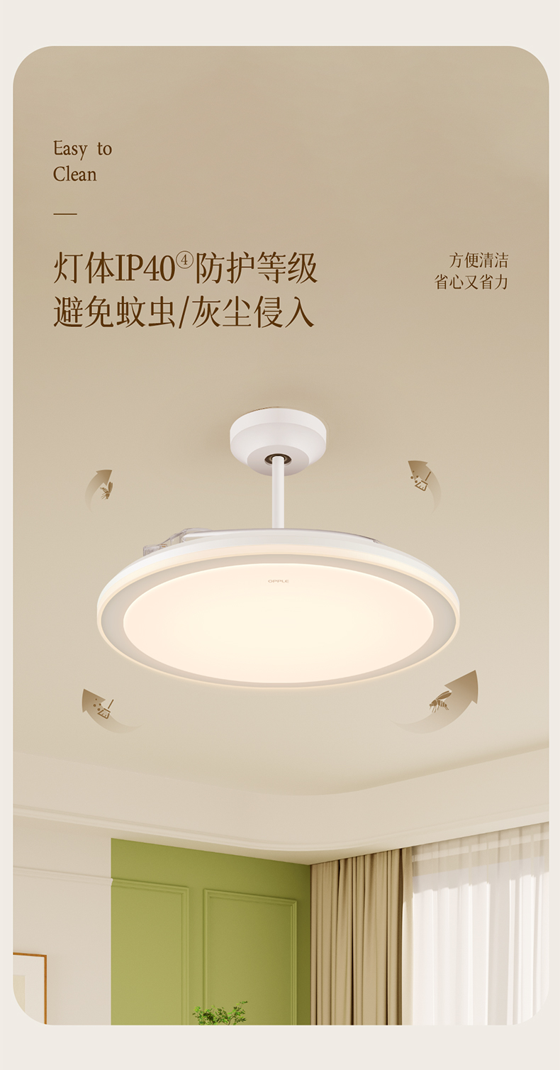 欧普(OPPLE)慕风餐厅风扇灯全光谱现代简约卧室隐形吊扇灯