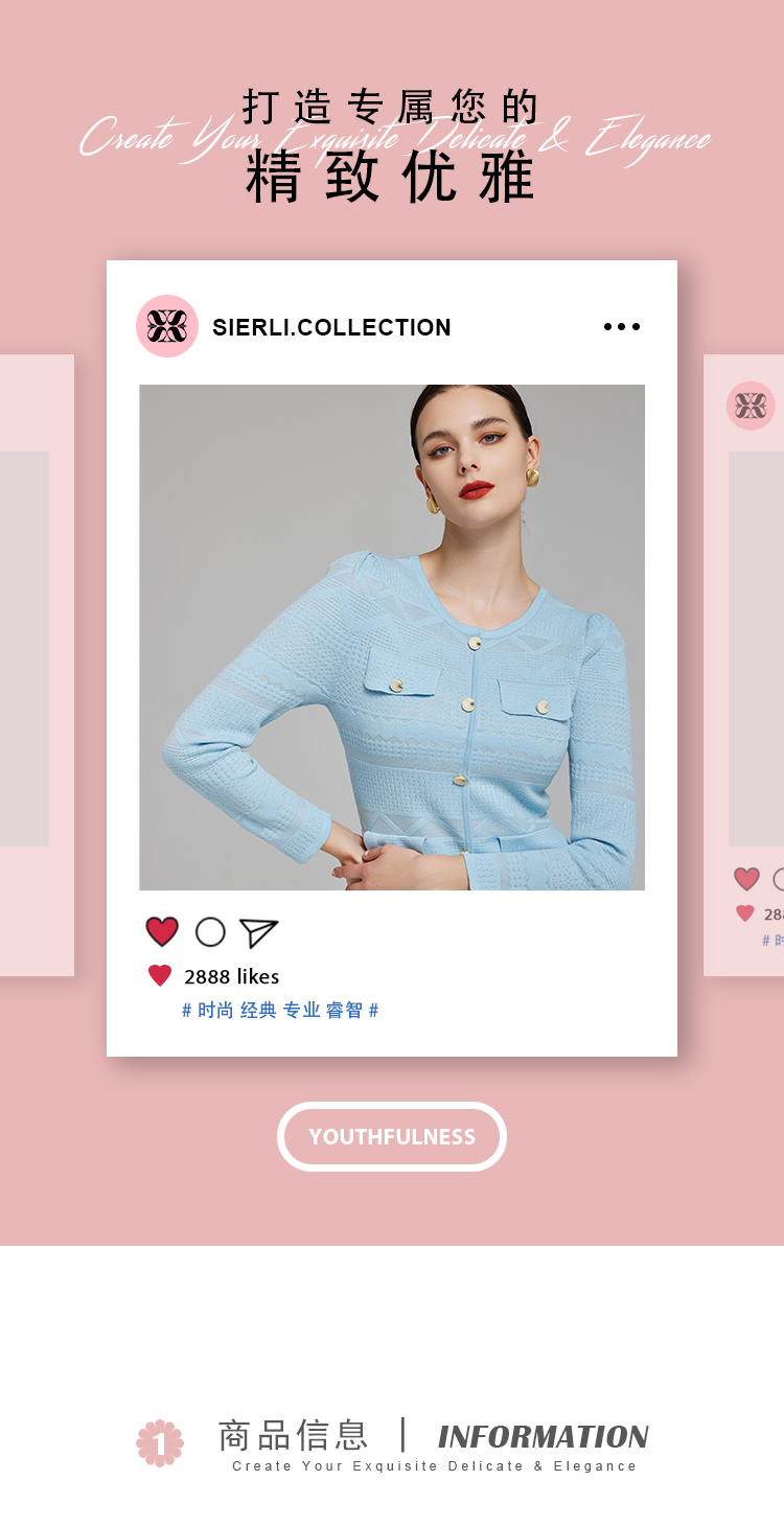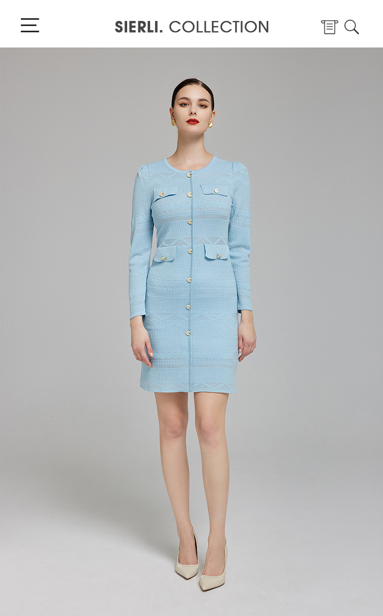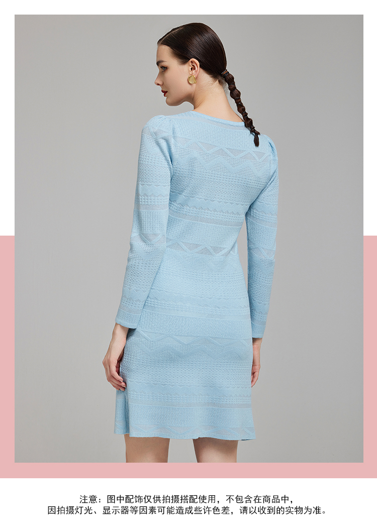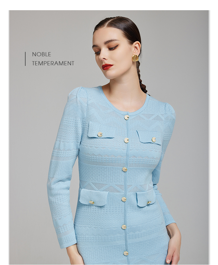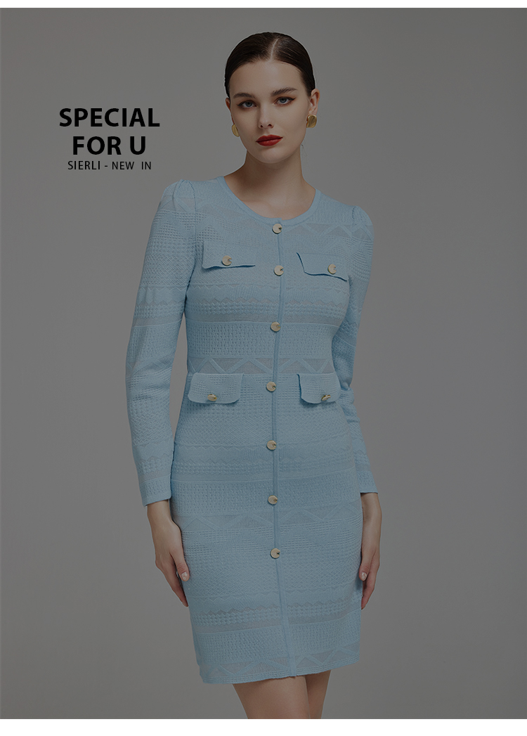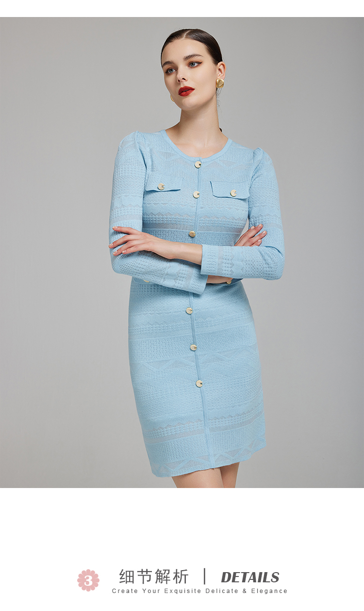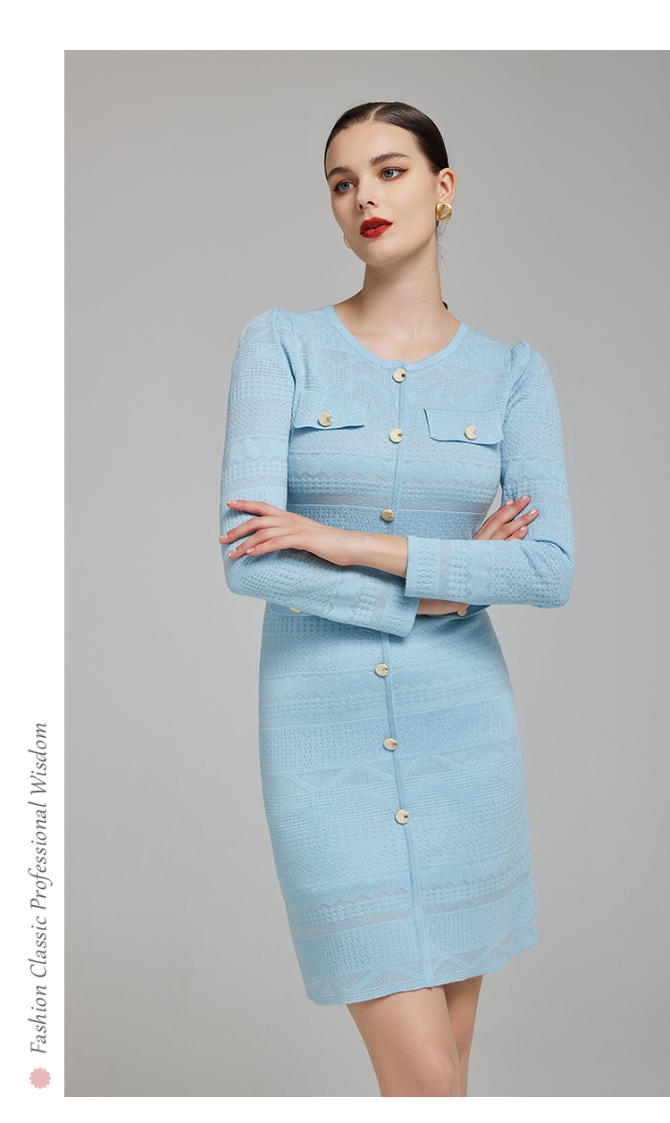 NG636斯尔丽2023秋季新款时尚提花针织小香风感装饰口袋修身显瘦连衣裙