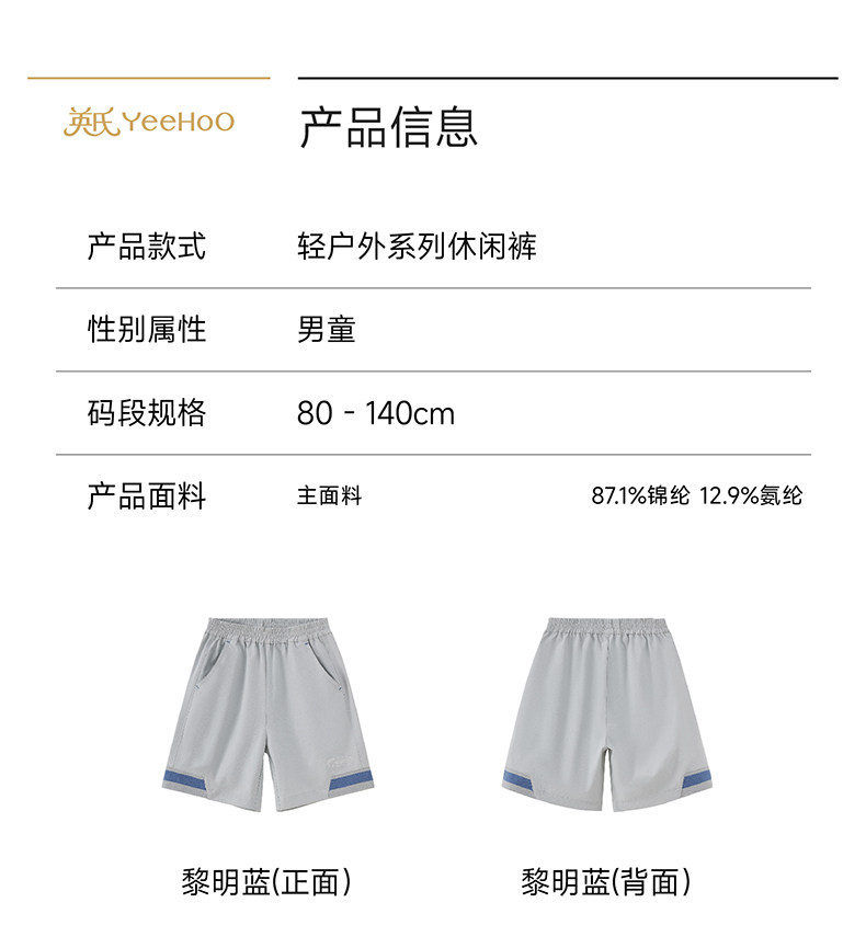 英氏男童夏季短裤新款儿童透气外穿休闲裤子男宝YRKEJ2S029A