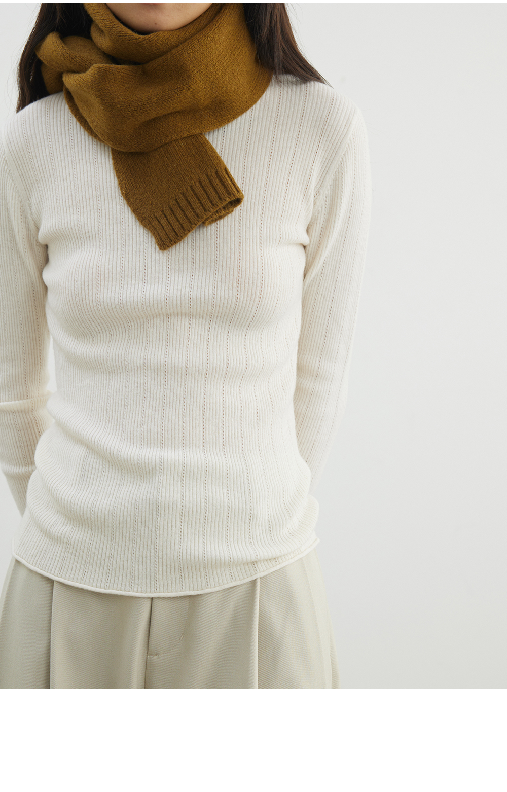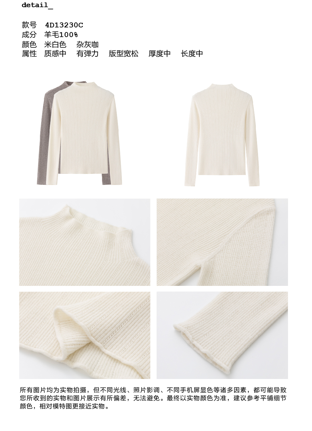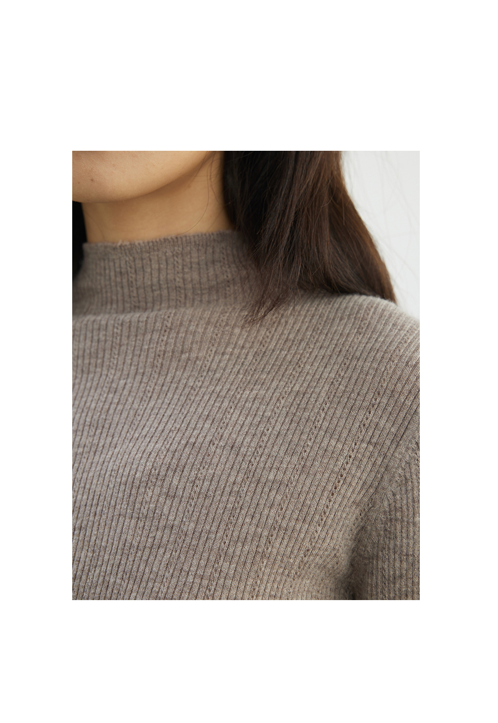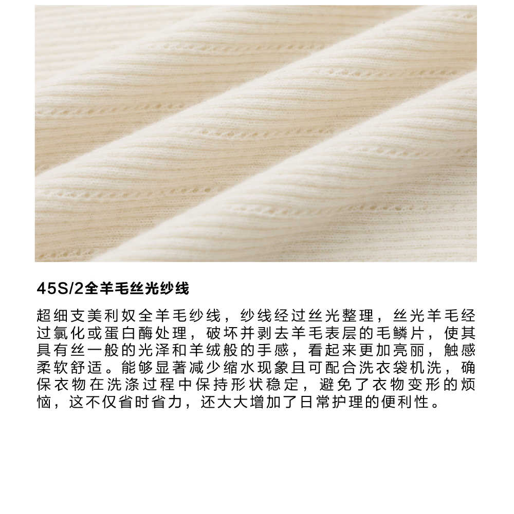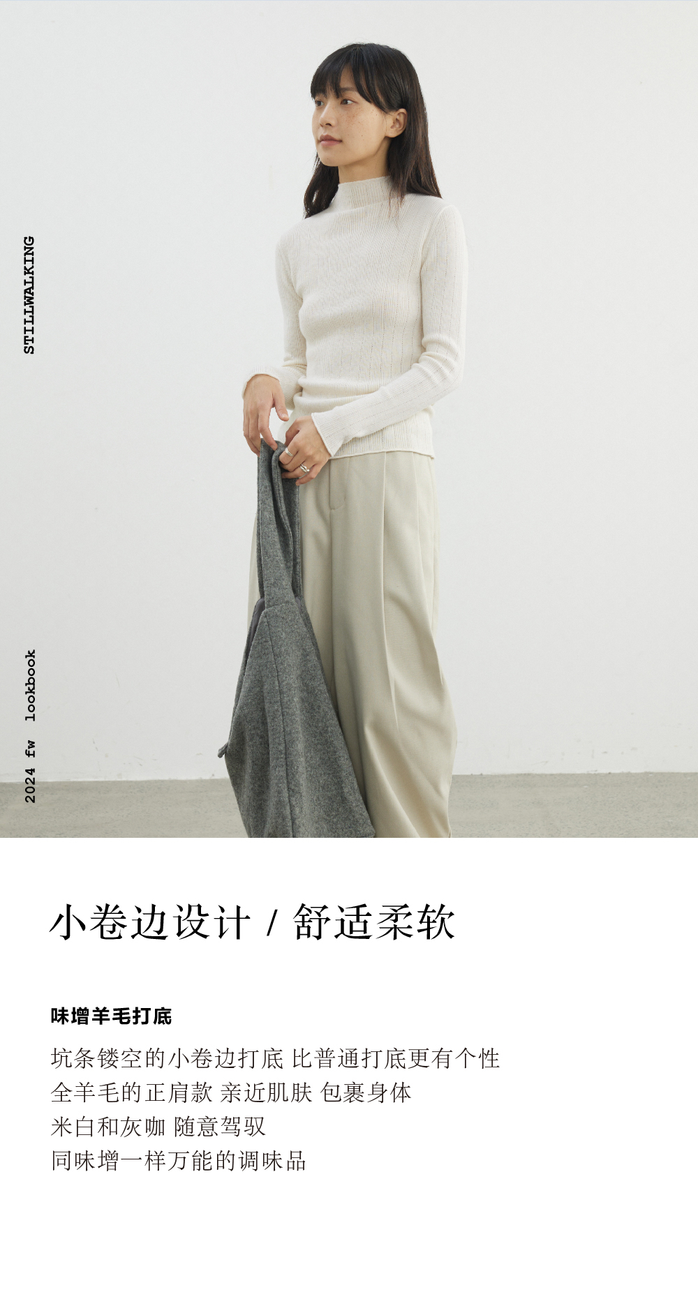 步履不停/4D13230C/柔软条纹肌理立领白色咖色羊毛打底衫