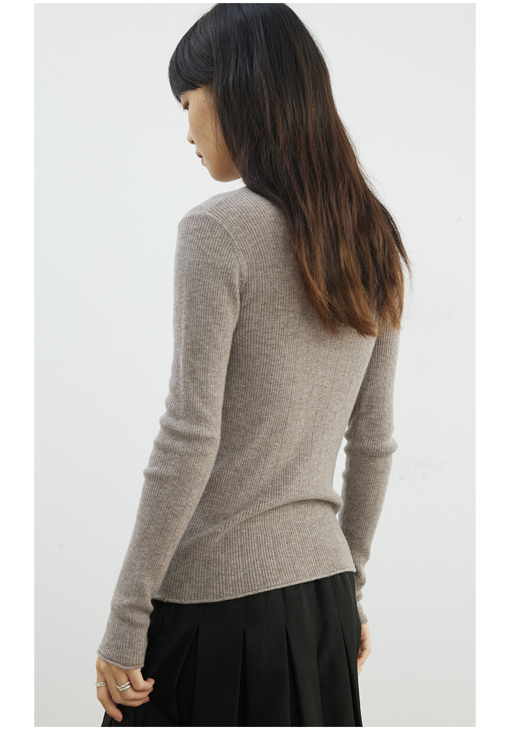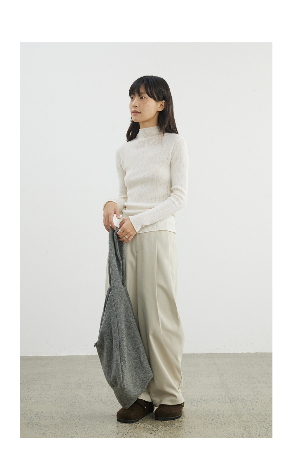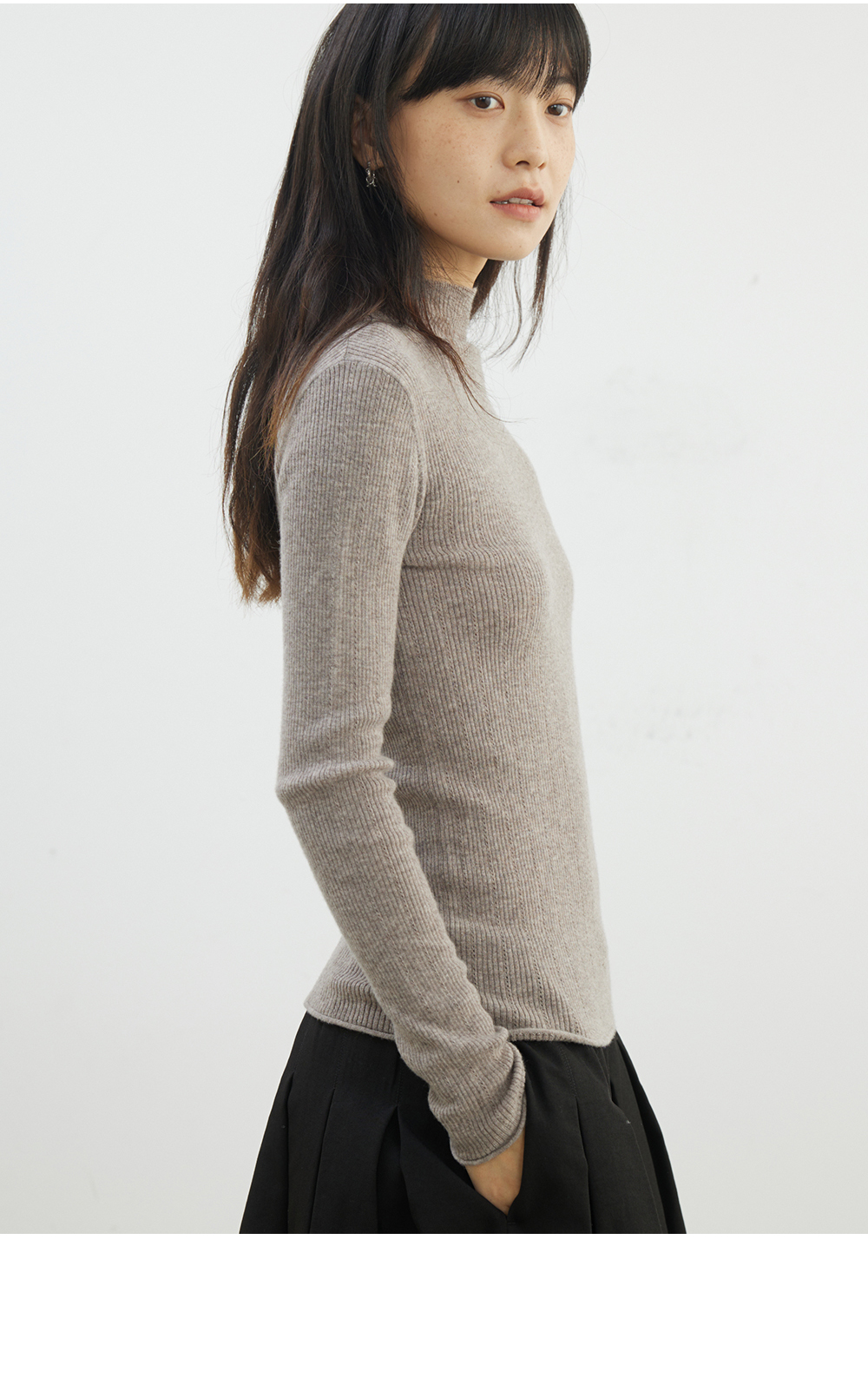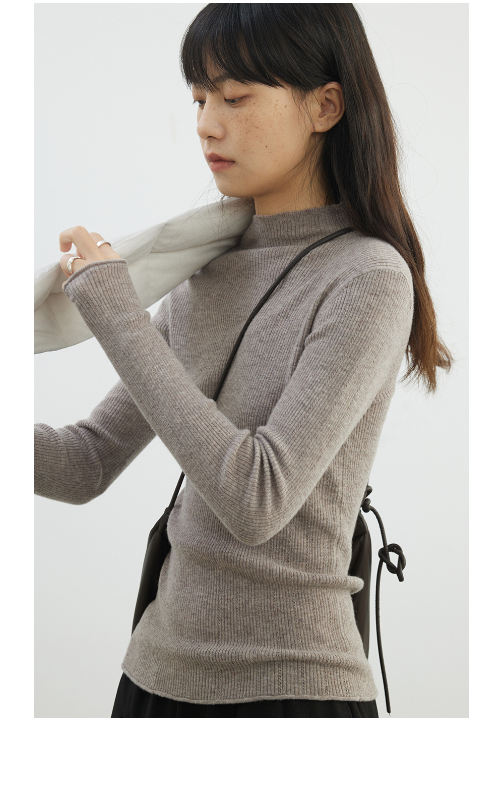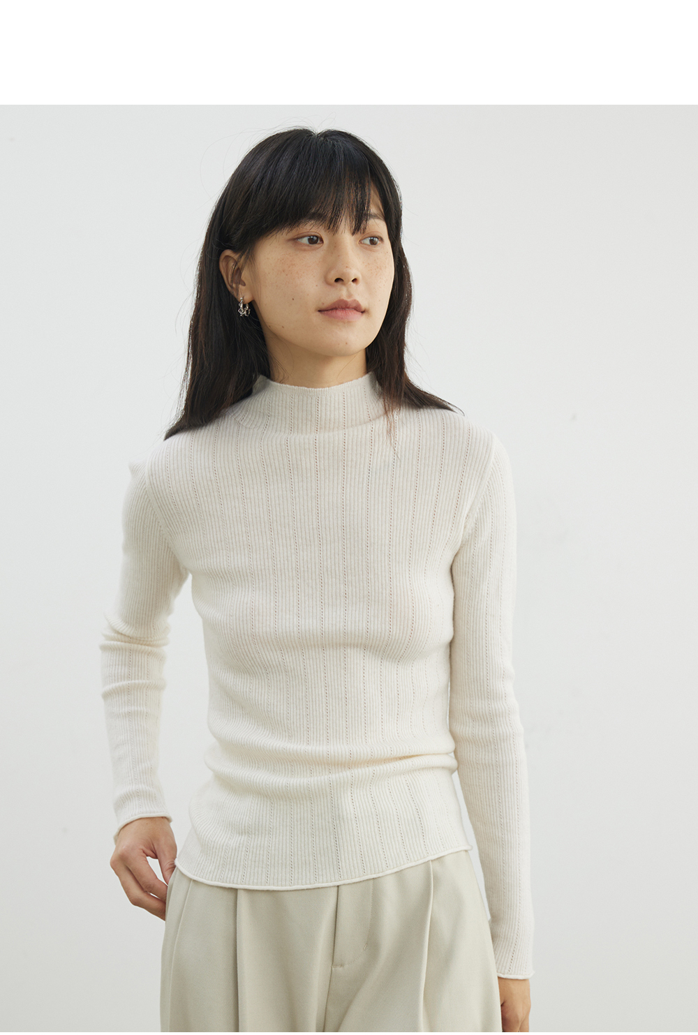 步履不停/4D13230C/柔软条纹肌理立领白色咖色羊毛打底衫