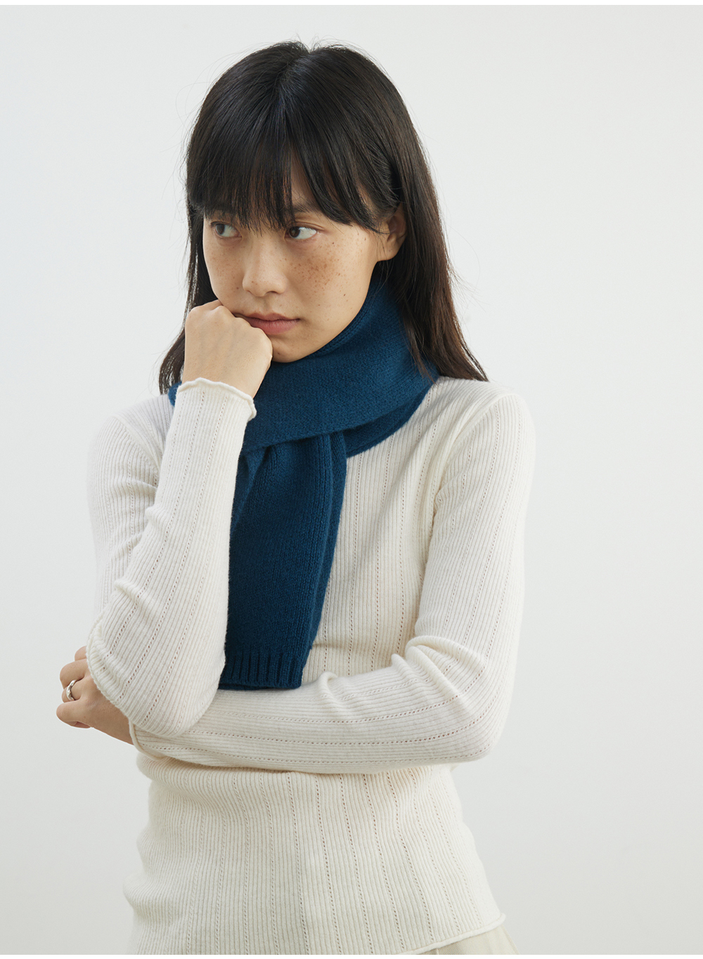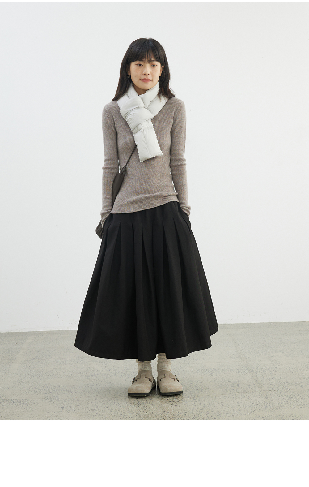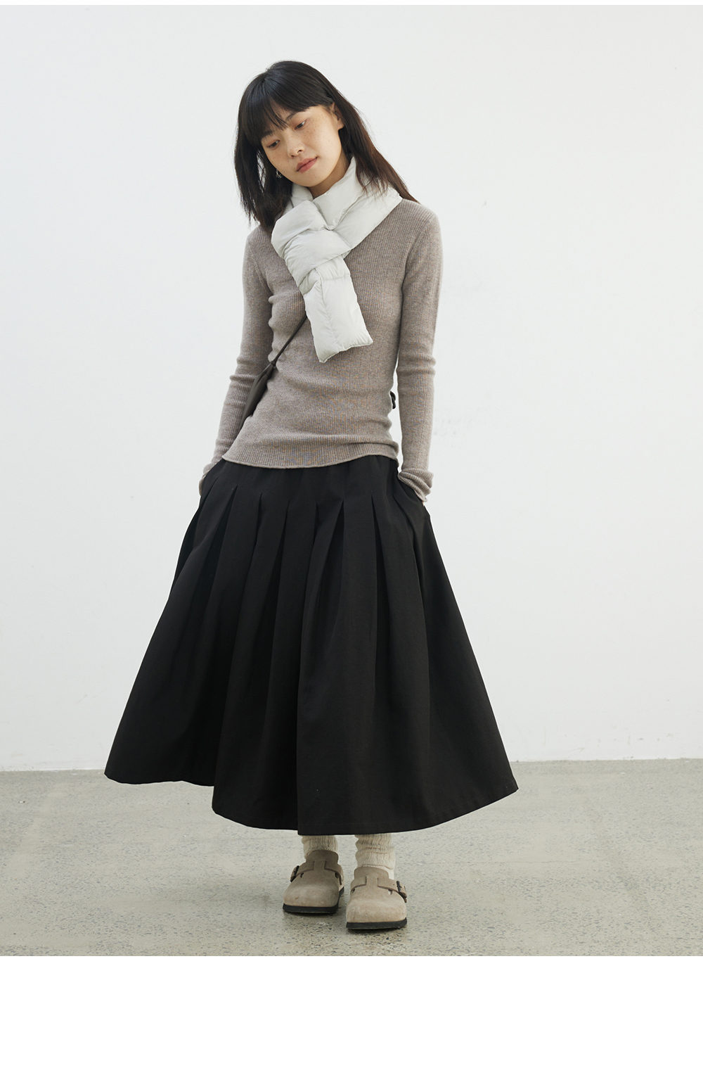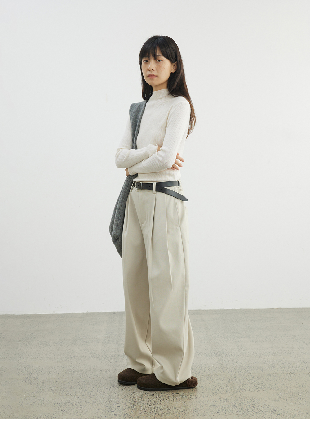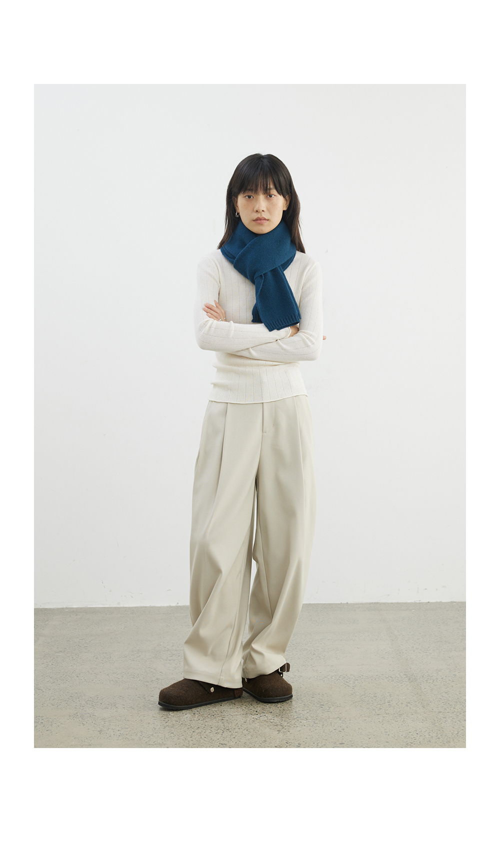 步履不停/4D13230C/柔软条纹肌理立领白色咖色羊毛打底衫