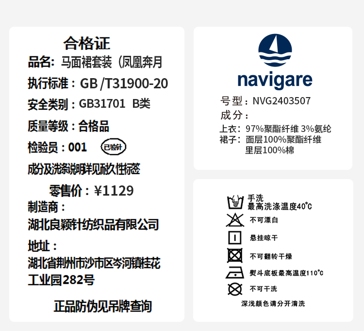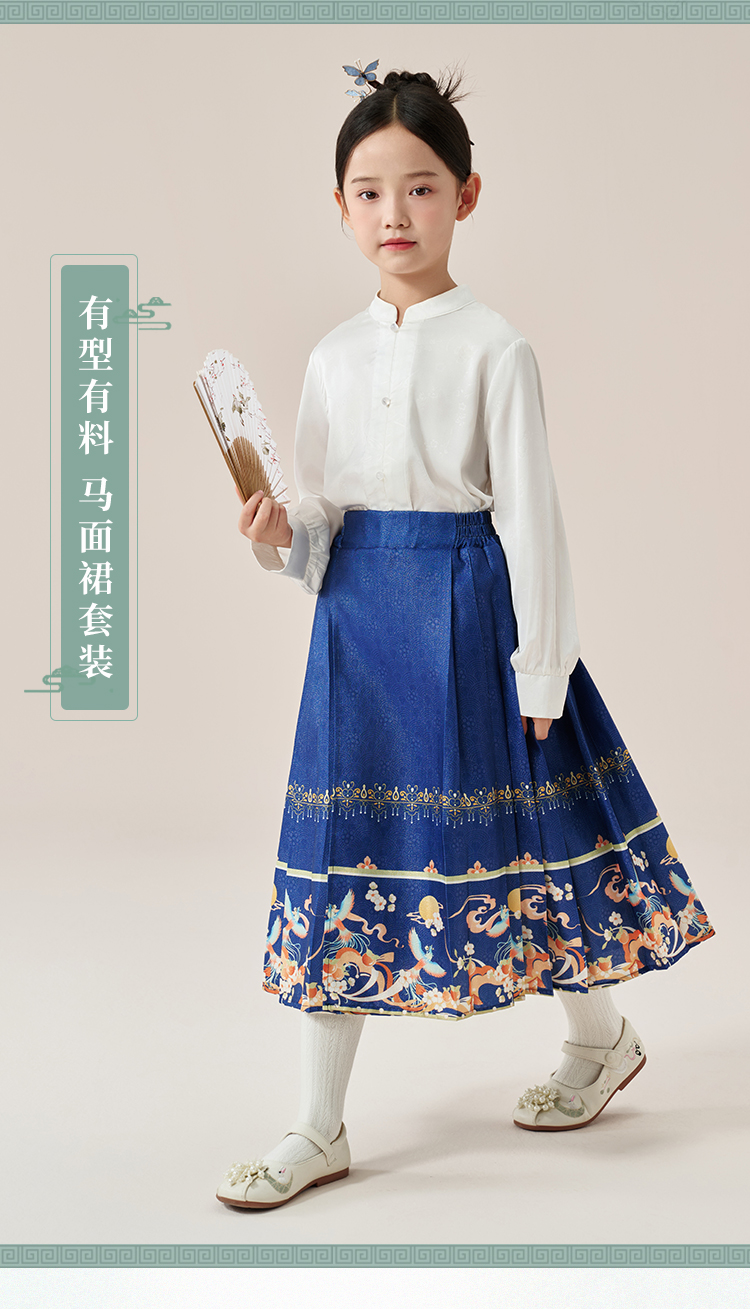 【纳维凯尔】【120-165】意大利小帆船女童新中式马面裙套装