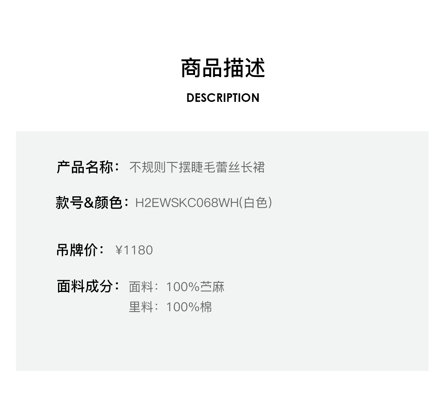 H2ESSKB083GY蝴蝶结装饰不规则百褶长裙