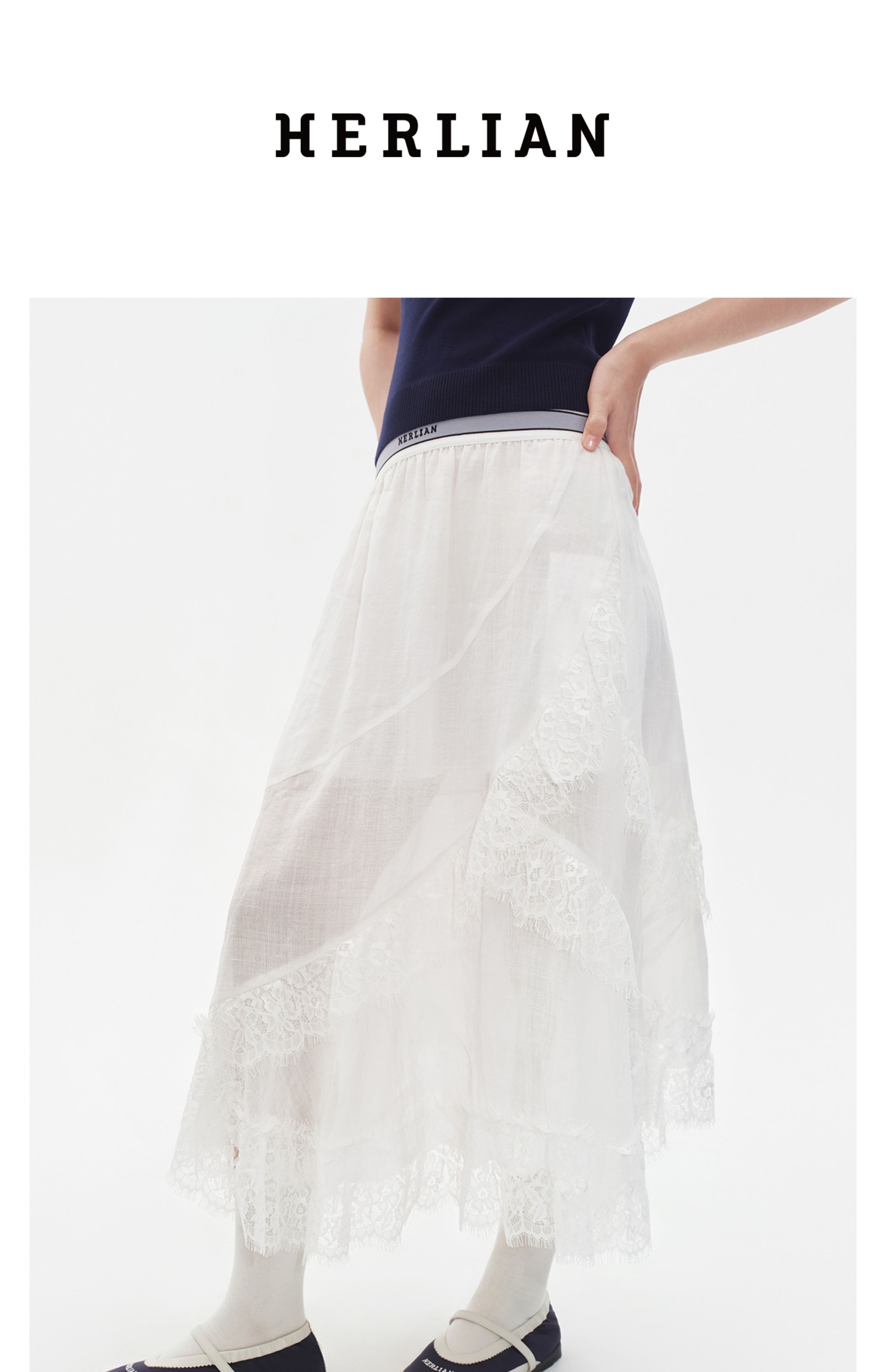 Herlian2025年秋季新品女士半身裙不规则下摆睫毛蕾丝长裙