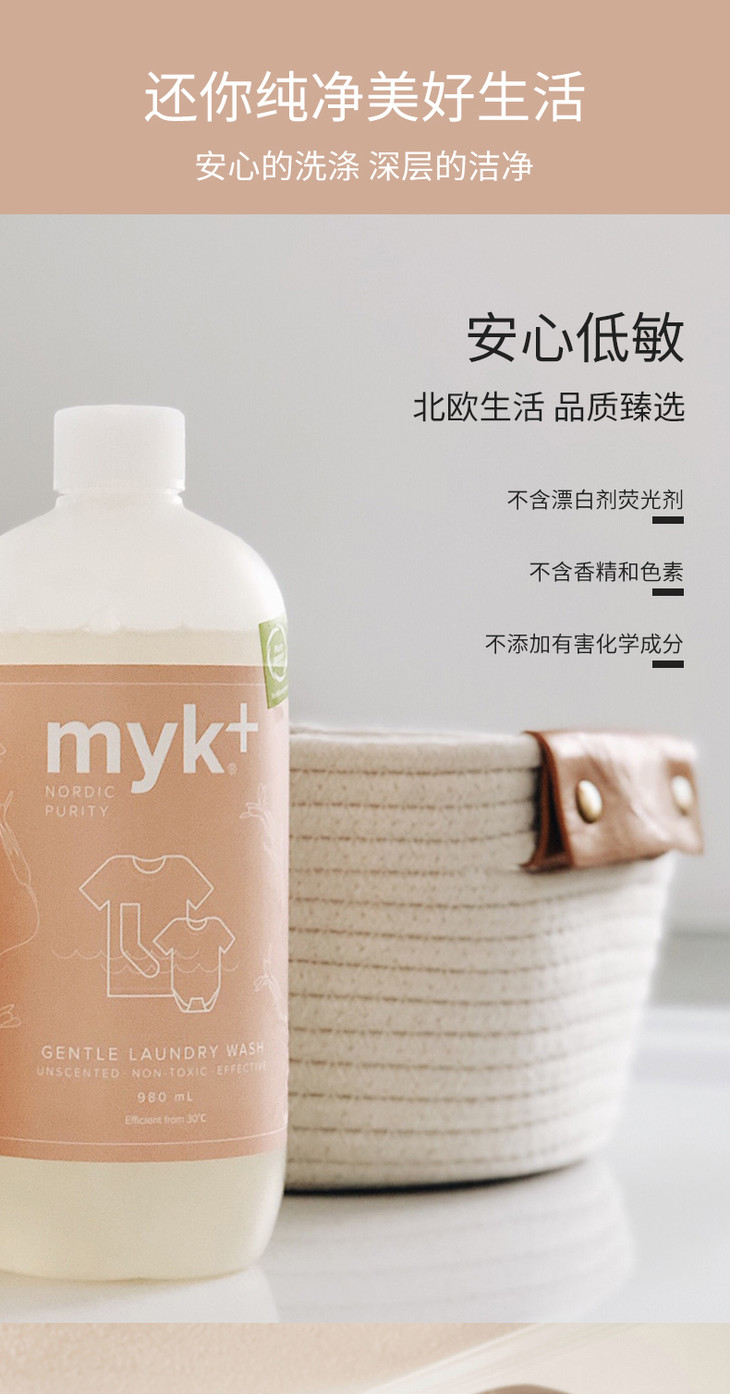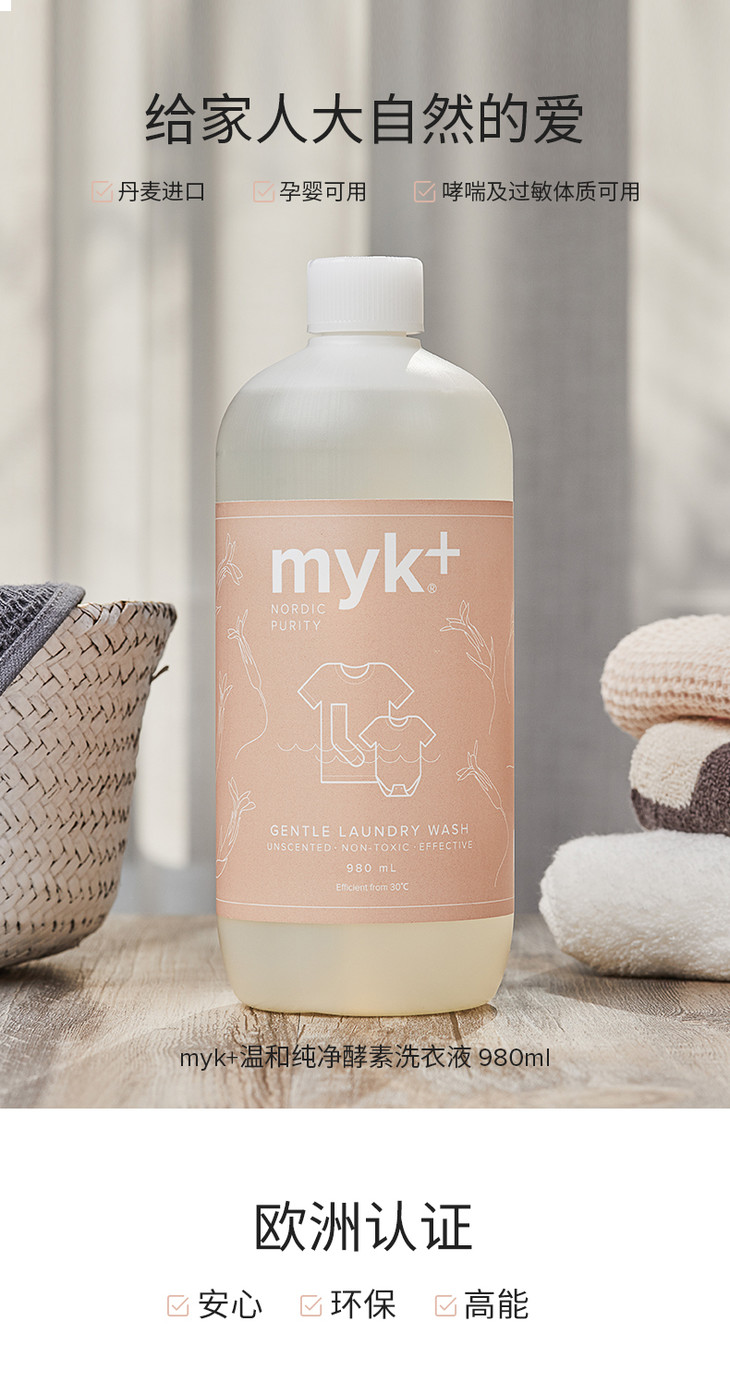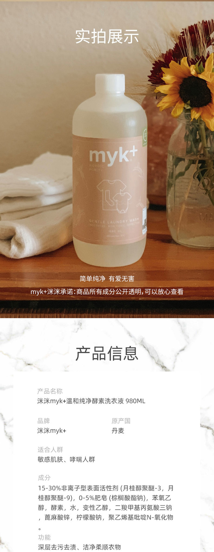 myk+洣洣丹麦进口酵素儿童洗衣液洗宝宝浓缩手洗内衣内裤980ml瓶装/500ml袋装【洣洣】