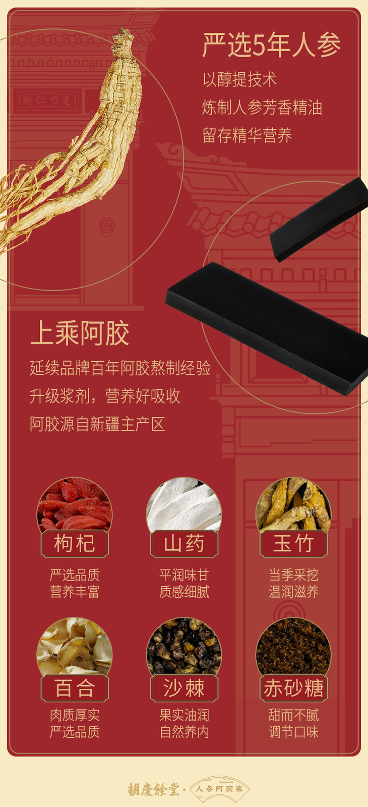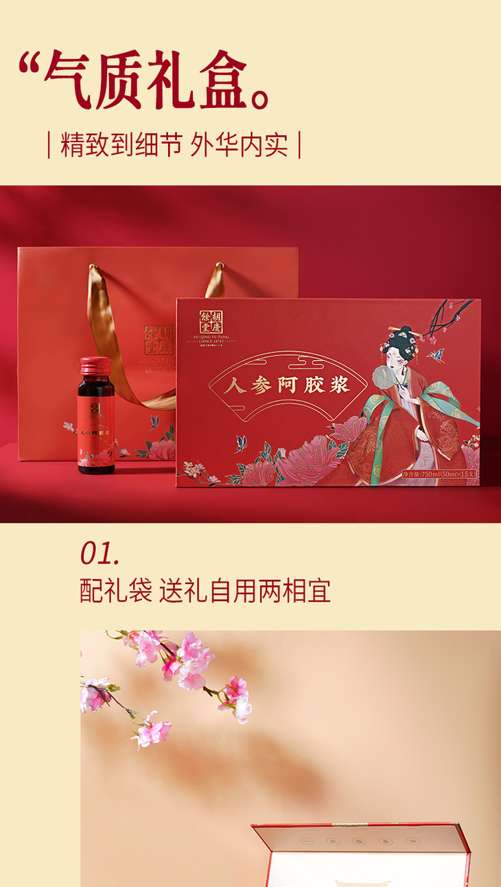 胡庆余堂 人参阿胶浆750ml(50ml_15支)人参阿胶浓缩精华