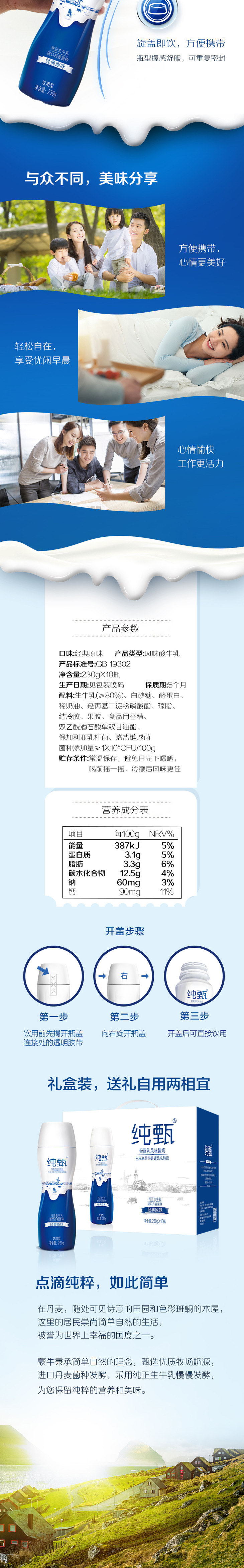 纯甄风味酸牛奶饮用型瓶装230g