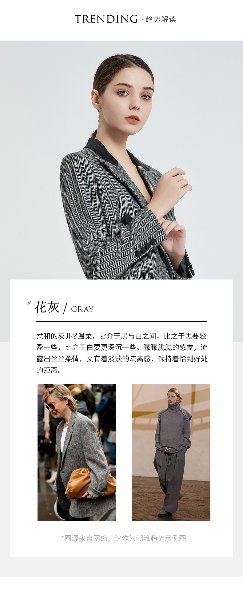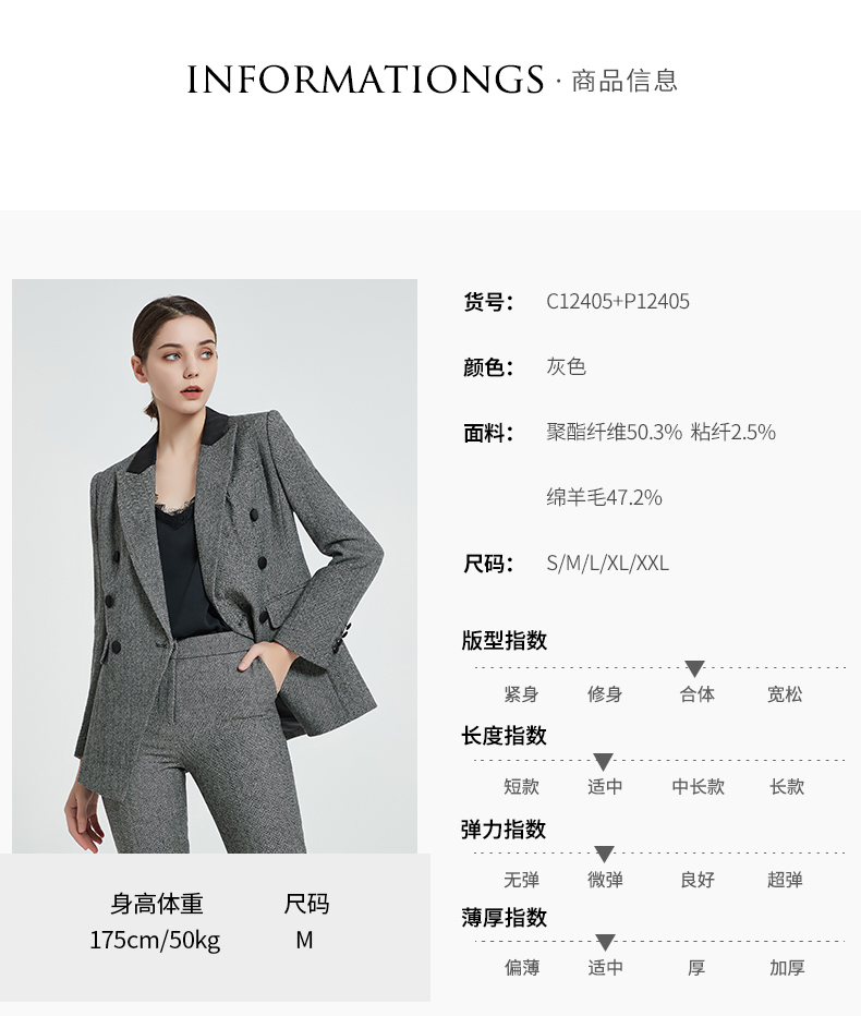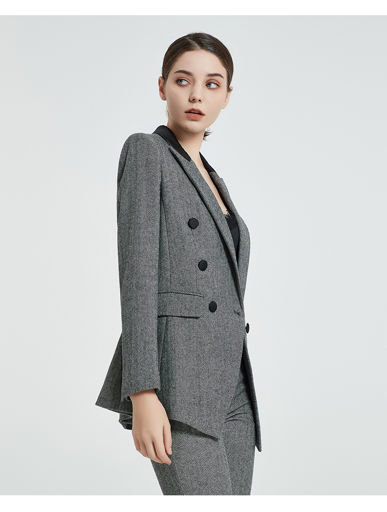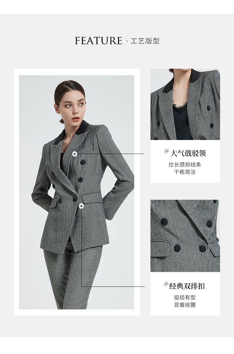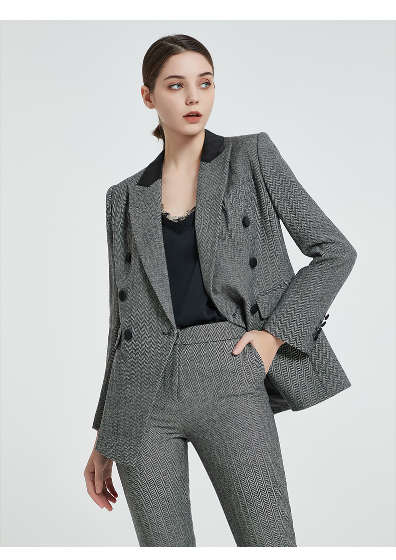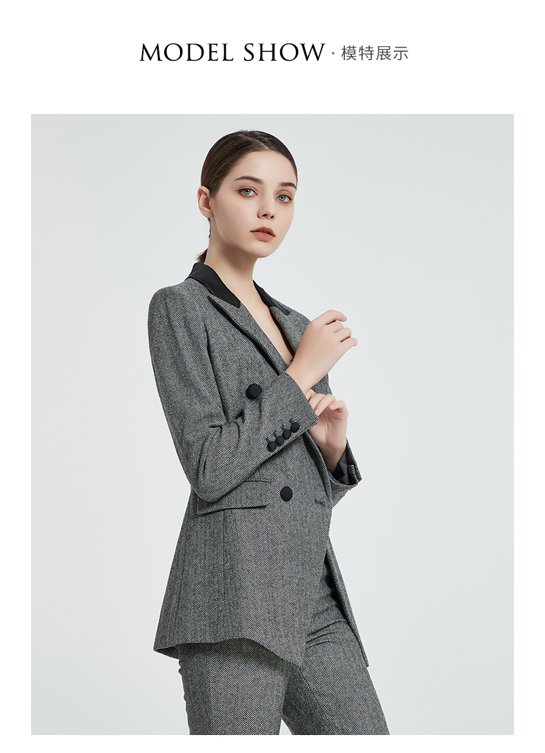 IWY/复古灰色人字纹羊毛套装黑灰拼接领女套装高管秋冬套装C12405+P12405