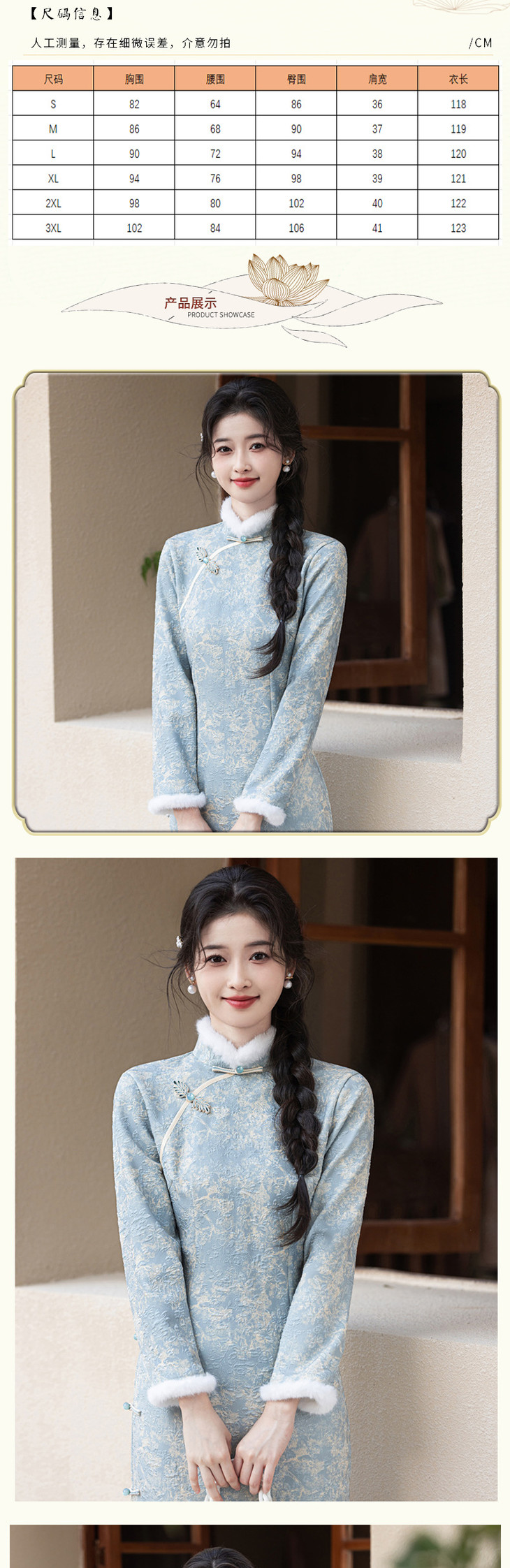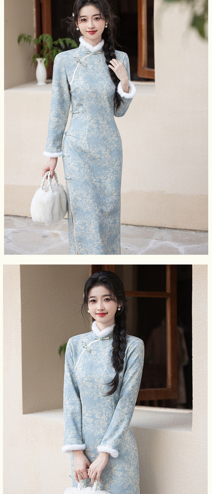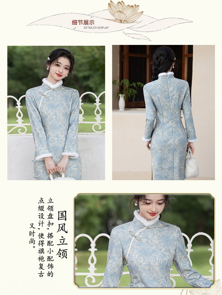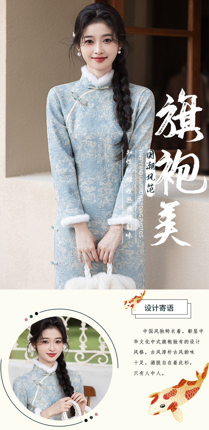 2024冬季新款提花超柔加毛加厚改良版修身旗袍SJT708