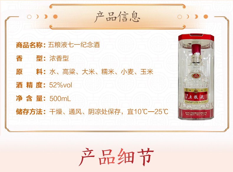 52度第八代五粮液定制酒系列(七一纪念酒) 500ml 单瓶