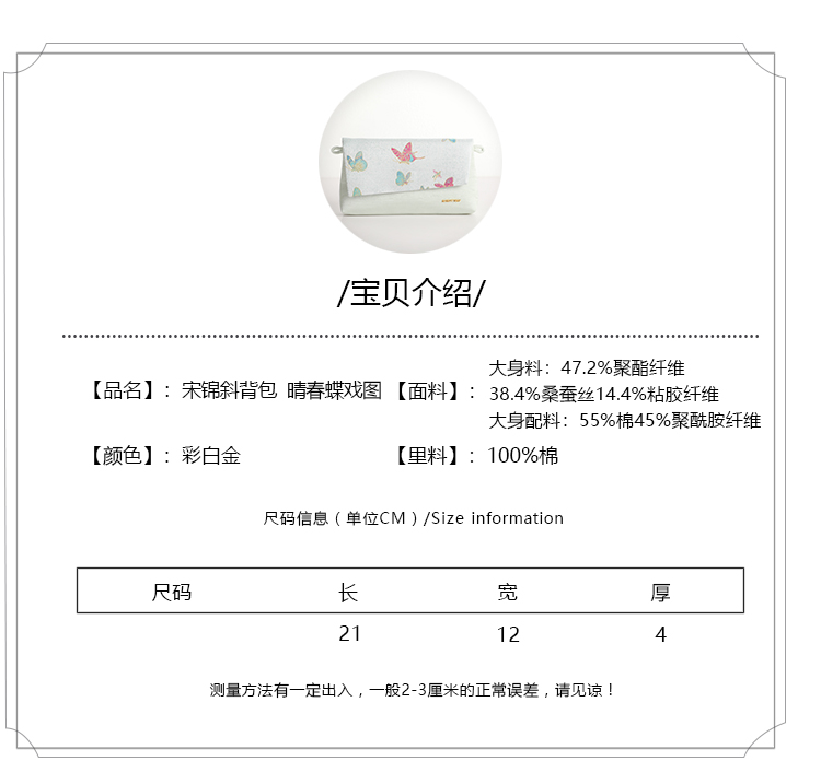 SAINTJOY/上久楷宋锦斜背包 晴春蝶戏图 彩白金 XB3B095208002