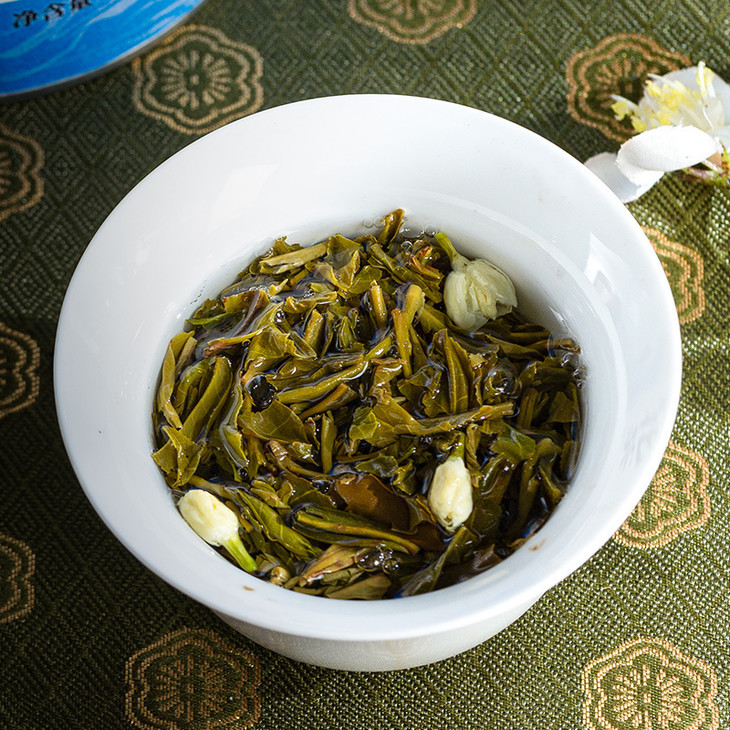 🔺3. 茶花拌合 上等的茉莉花茶 对茶坯选料同样非常讲究 这款茉莉花茶 只选海拔1000米以上的高山绿茶