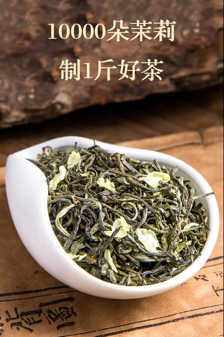 上好的特级茉莉花茶 要反复上述过程,历经【7次窨制】 10000朵花600小时方可制成1斤茶