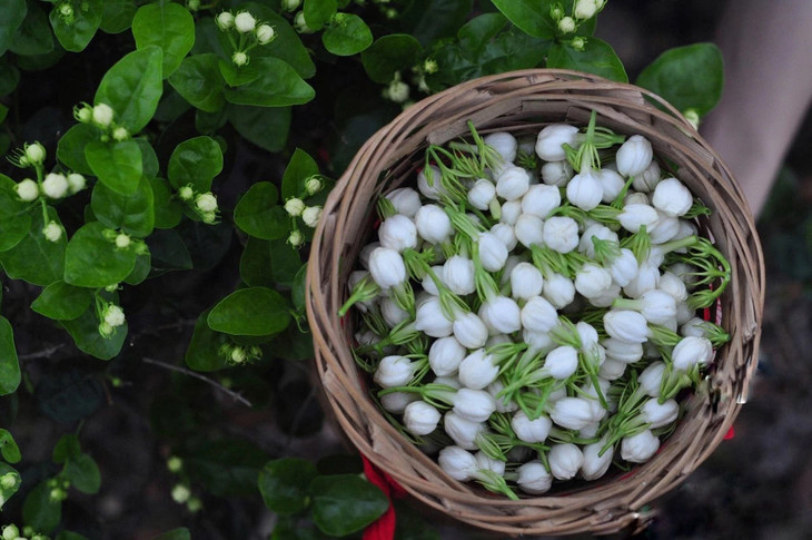采摘下的茉莉花蕾 用通气箩筐或网兜装好 避免“火烧花”