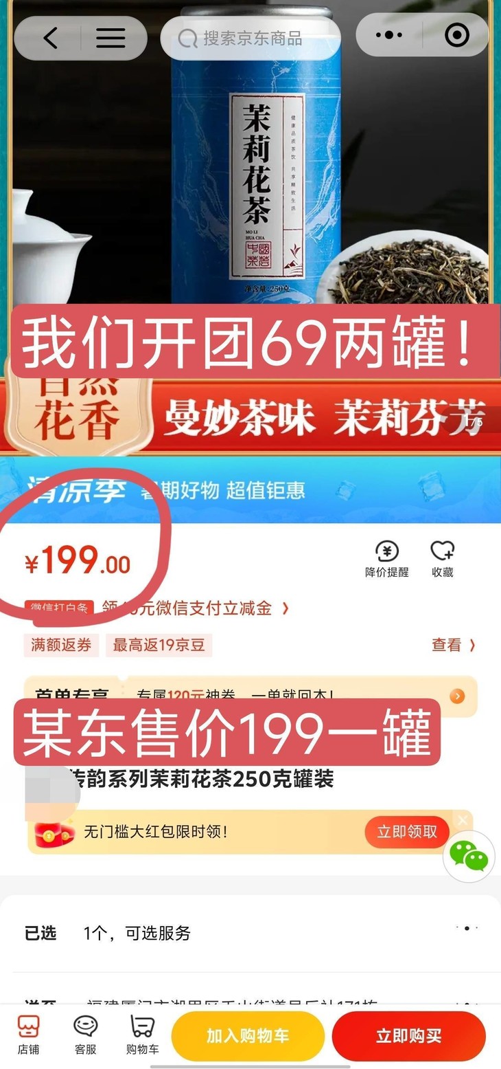 🔺某东售价💰199元/罐 🔺今天咱们开团两罐只要💰69 茉莉花之都横县出品❗太平洋保险承保❗ 真正的茉莉花好茶!大颗茉莉花看的见👏 真的太划算了🤩