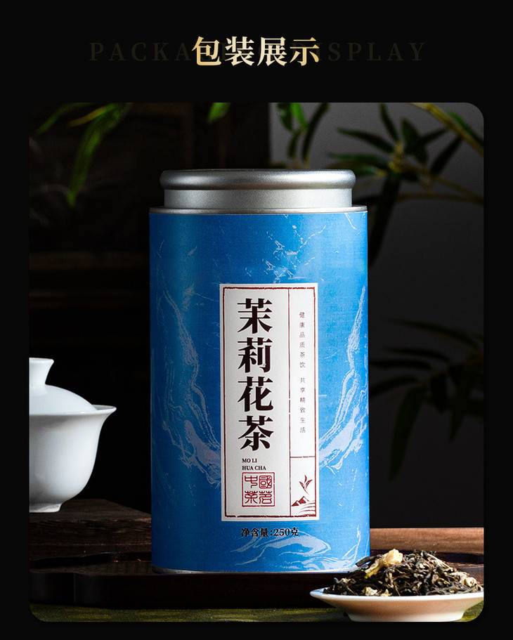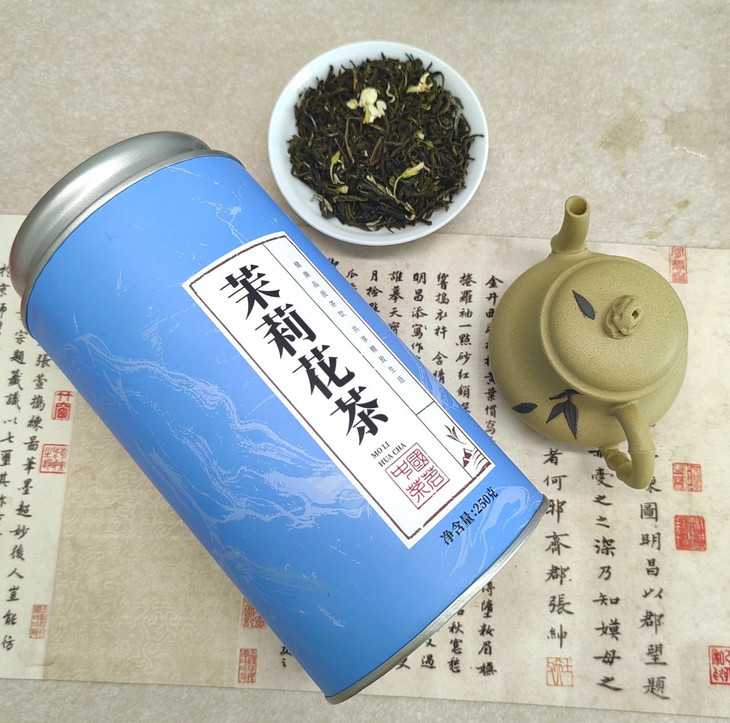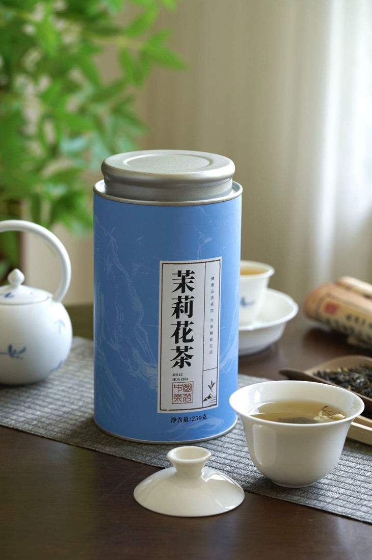 清仓团❗仅💰69元抢两大罐【卧芳华晴蓝罐茉莉花茶】,🔥茉莉花茶就可以调和👍🏻清新口气 🈶茉莉花香太好闻😆,1000朵茉莉制作1斤的茉莉花茶🌸 ,600小时七窨一提😋
