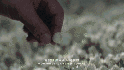 每一根都是一芽一叶,挑上好的茶善,而后传统手工揉捻 一个熟练制茶工,一天也仅能揉制出五斤茶叶 由此制成的【茶胚】格外珍贵 (揉捻成胚)