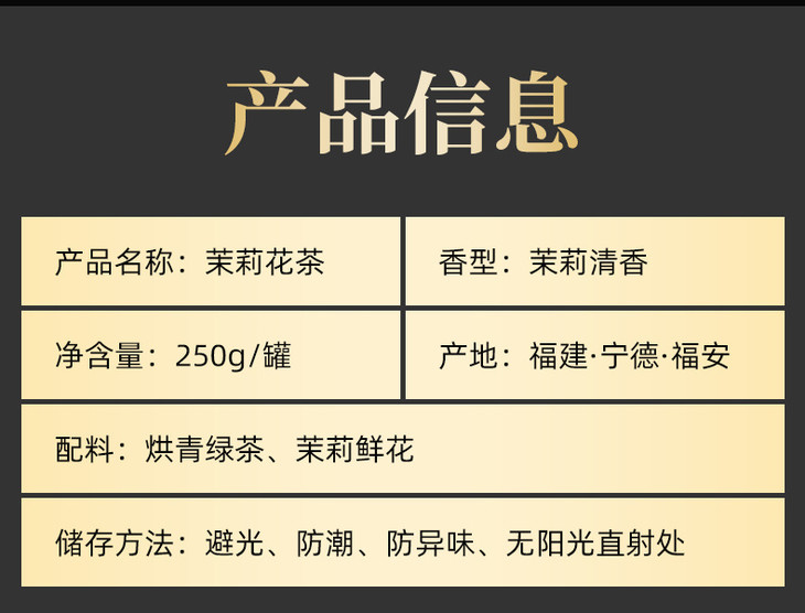 ✅密封设计 密封锁鲜 对茉莉花茶储存时间得以提升 内外兼修 用心包装 精美铁罐细腻打造 黄金比例 👍