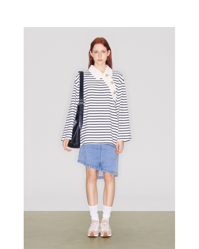 [捡漏价]lost in echo秋季新款休闲侧拉链设计撞色条纹运动感阔腿牛仔裤