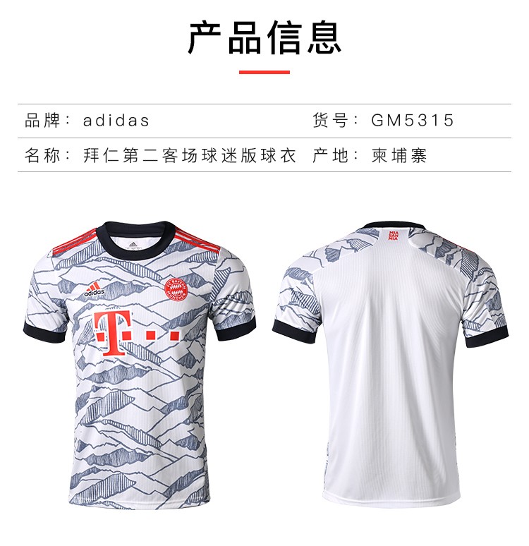 ADIDAS/阿迪达斯21-22赛季拜仁2客球迷版球衣短袖男GM5315
