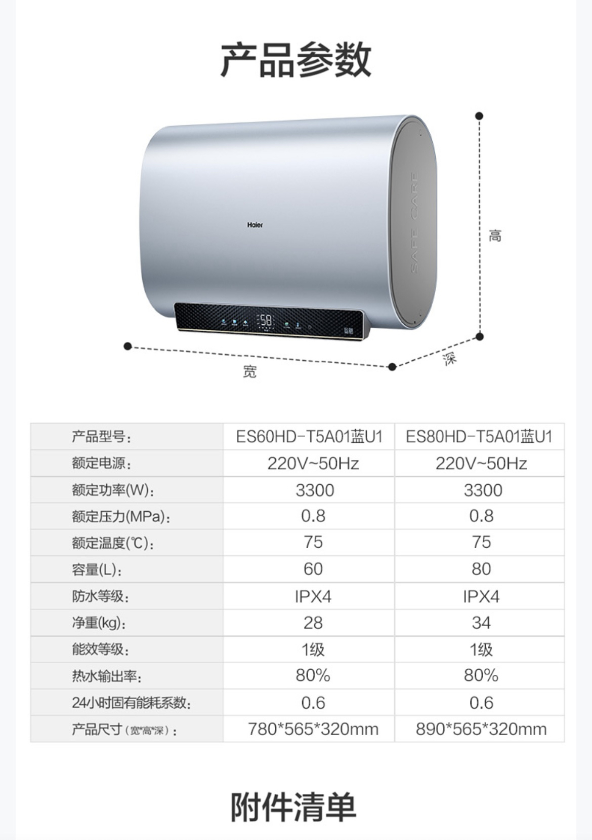 海尔(Haier)热水器ES60HD-T5A01蓝U1