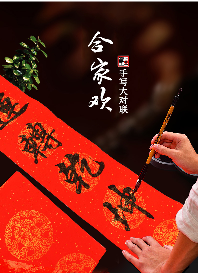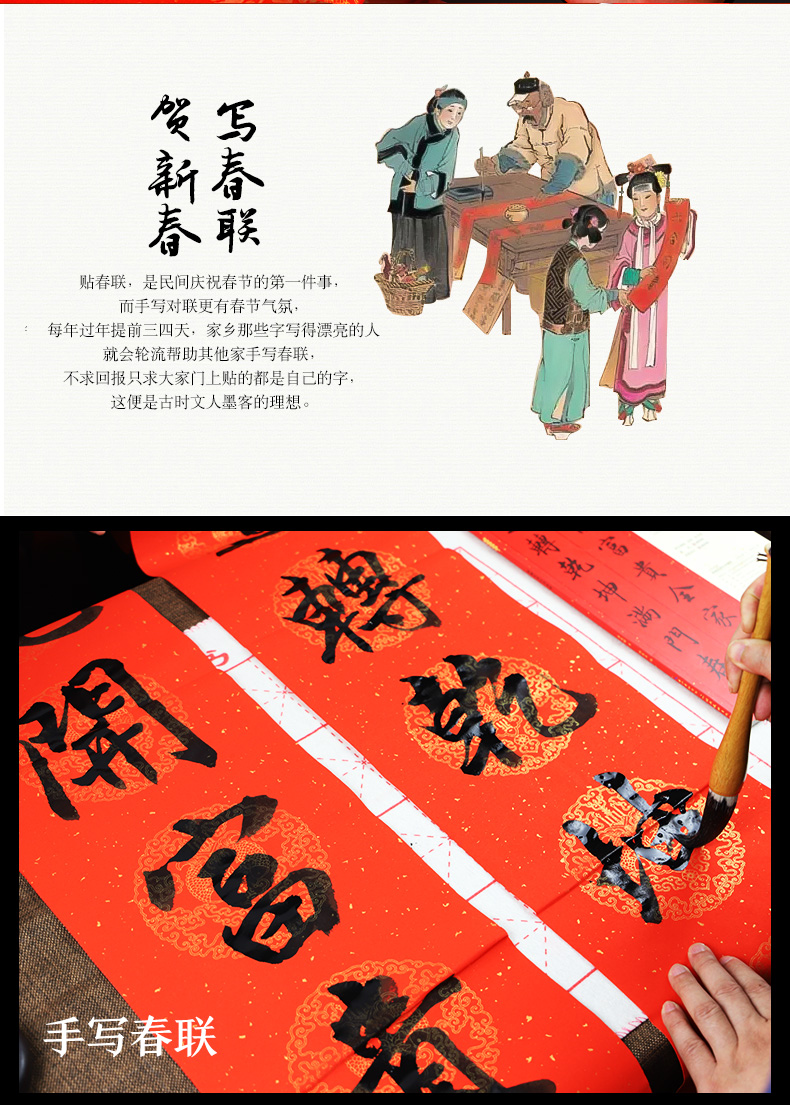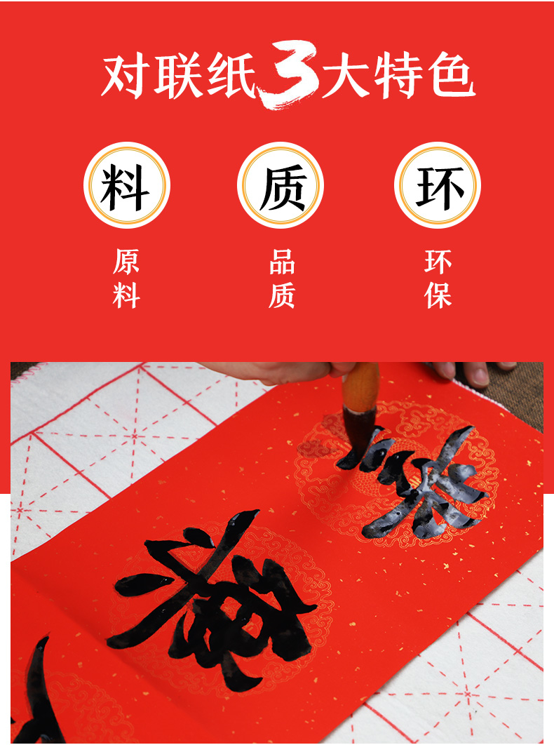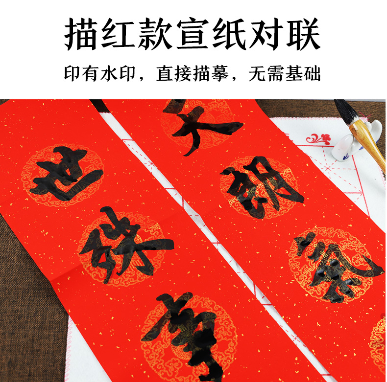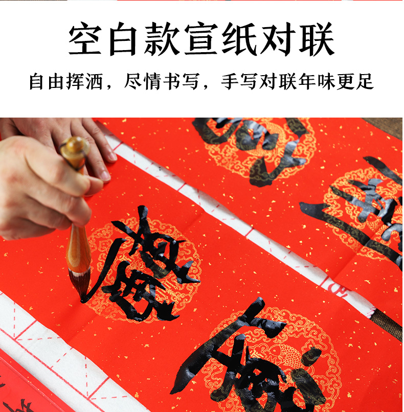 万年红春节对联纸手写空白对联宣纸手写春联纸对联专用纸墨点合家欢洒金宣纸对联手写春联书法红纸七言对联