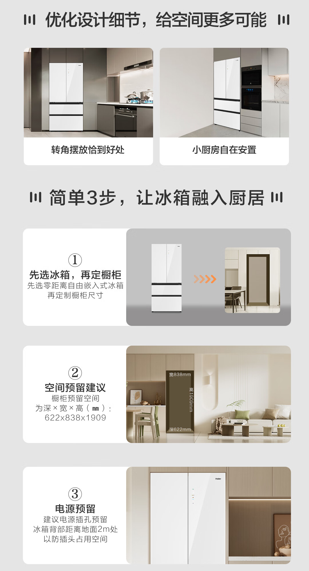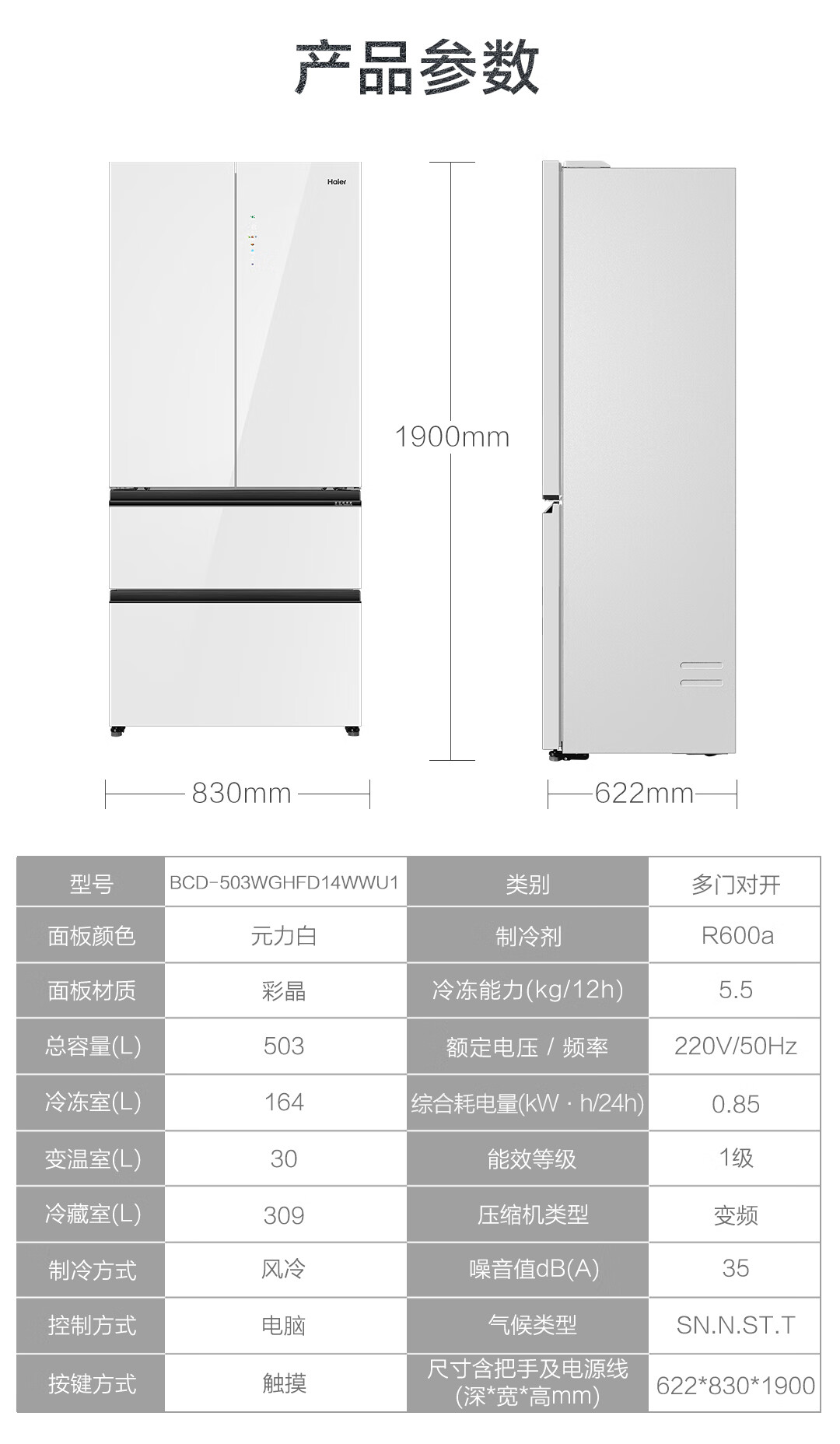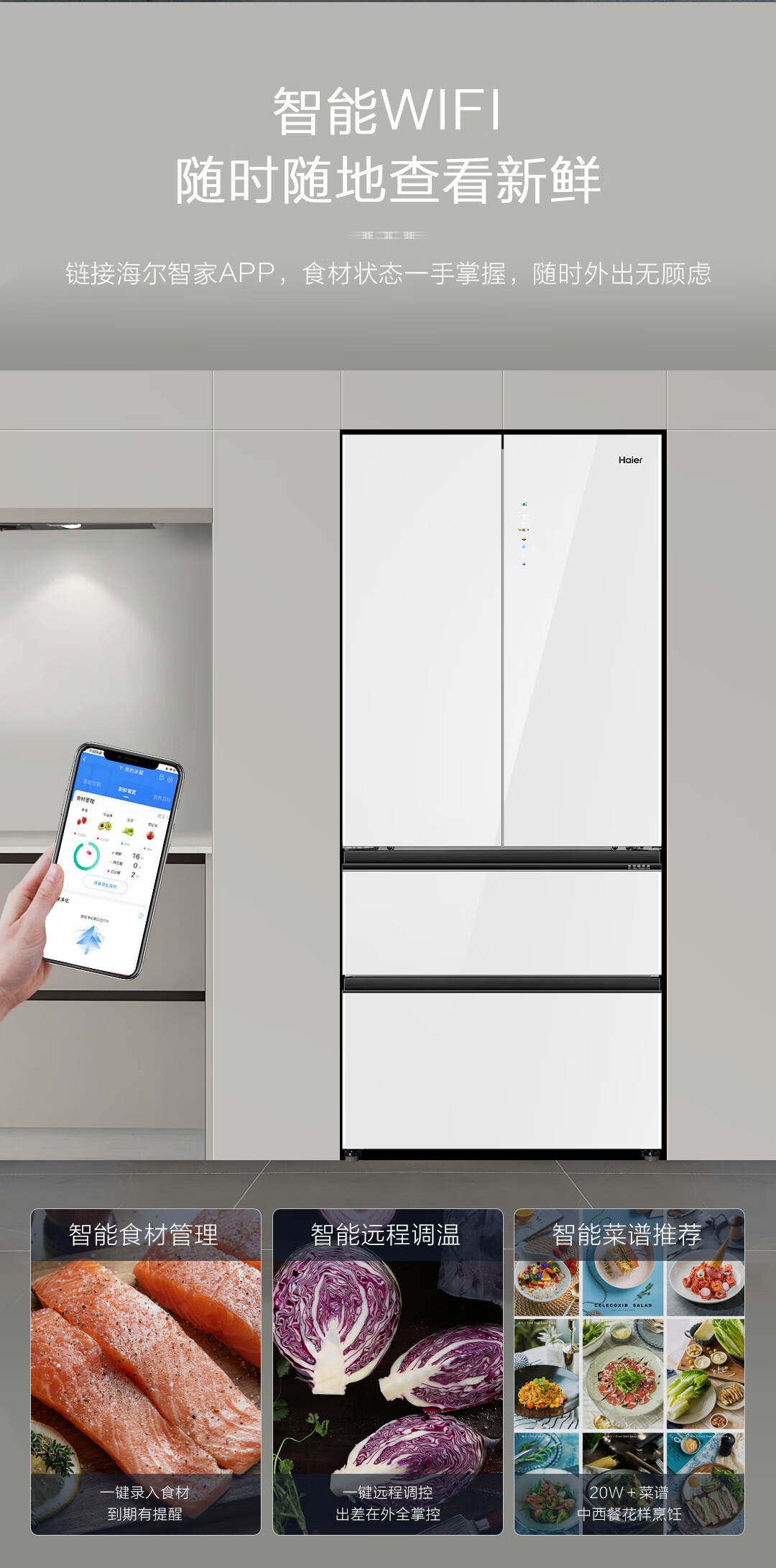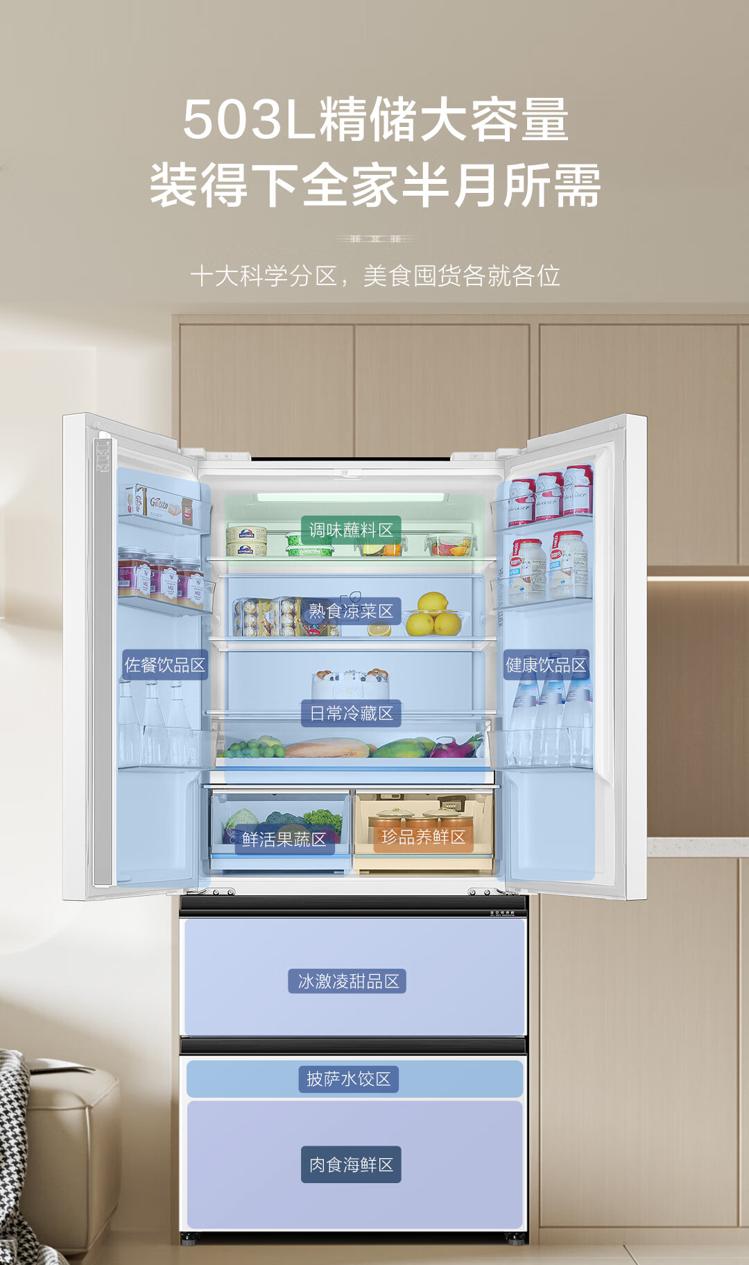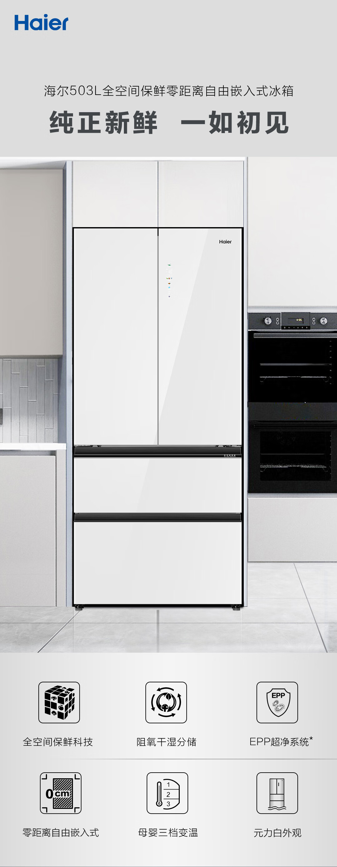 【全空间保鲜零嵌】海尔冰箱503升白色法式多门双开四开门家用超薄一级能效变频大容量 503升+EPP超净+500升级款白色彩晶面板 BCD-503WGHFD14WWU1