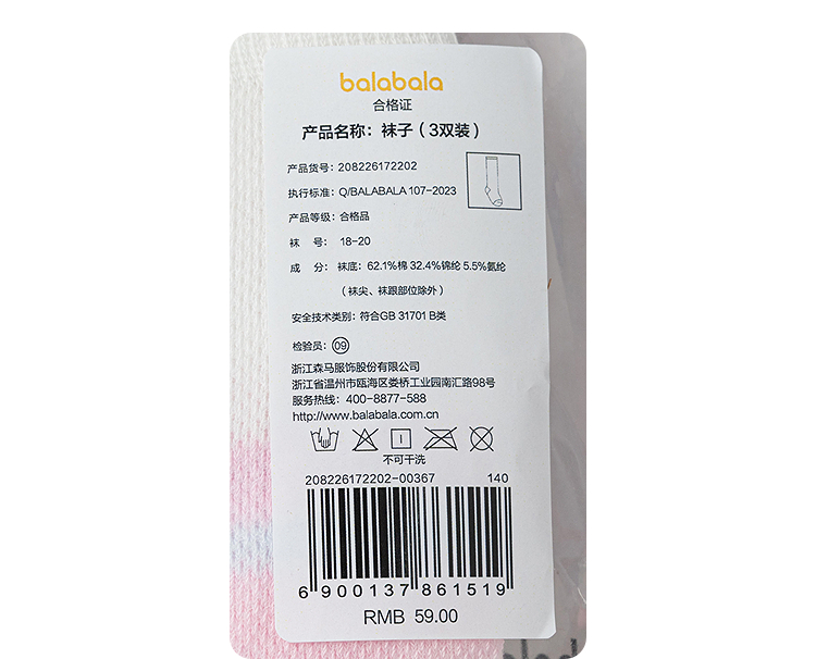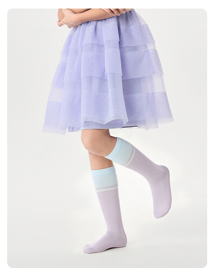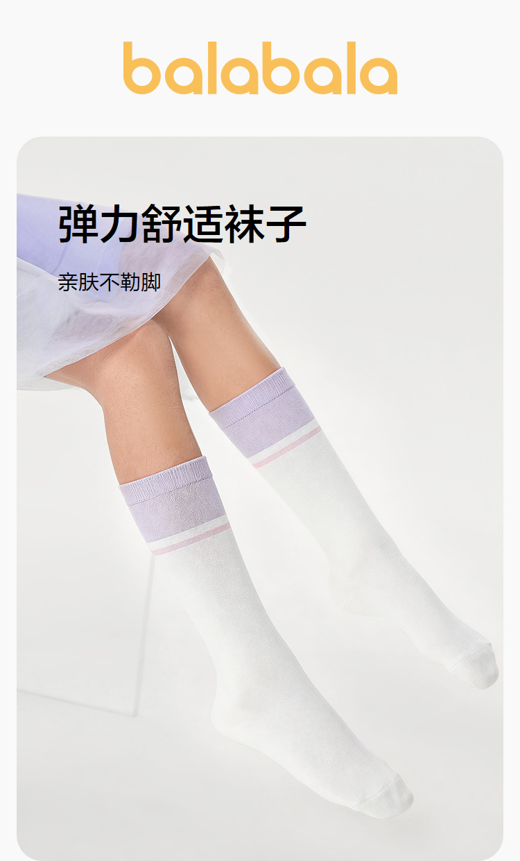 巴拉巴拉儿童袜子夏季网眼袜透气薄男女童中筒袜学院风棉弹三双装
