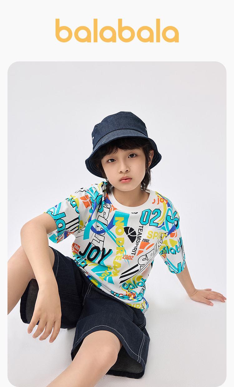 巴拉巴拉童装打底衫儿童短袖t恤男童中大童夏装速干纯棉上衣印花