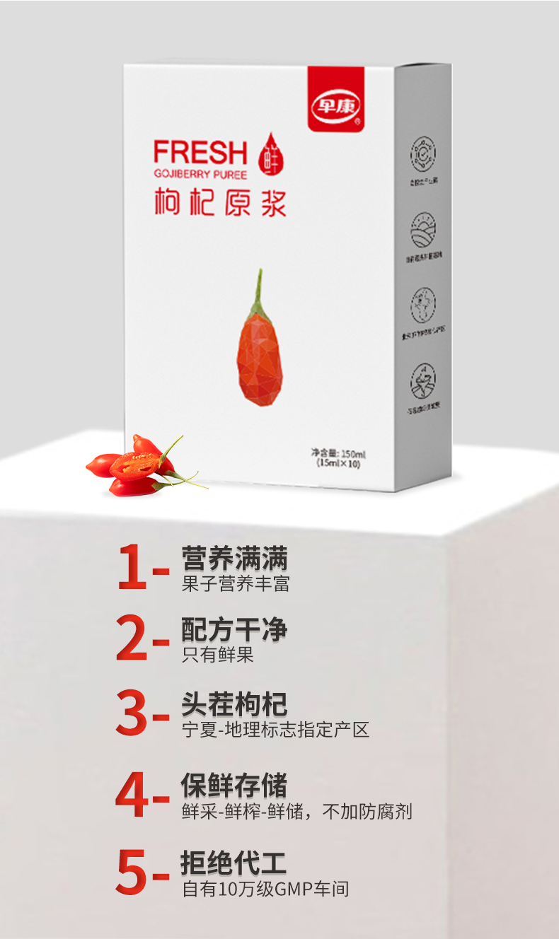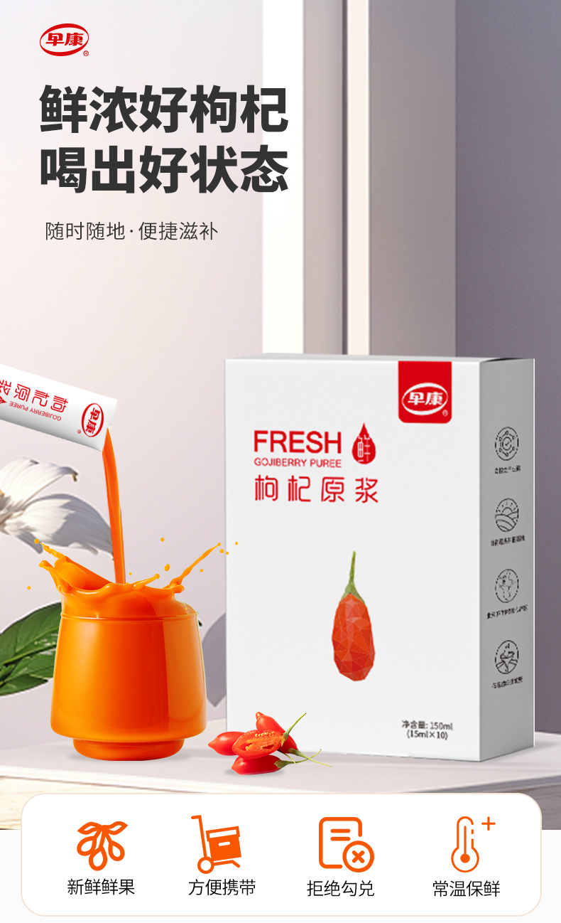 【早康鲜杞原枸杞原浆 4盒】多重营养 “透支”的精力容颜喝回来 好喝 不加色素防腐剂 15ml*10袋装/盒