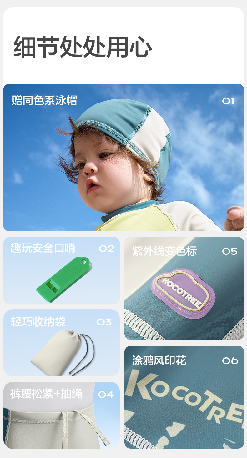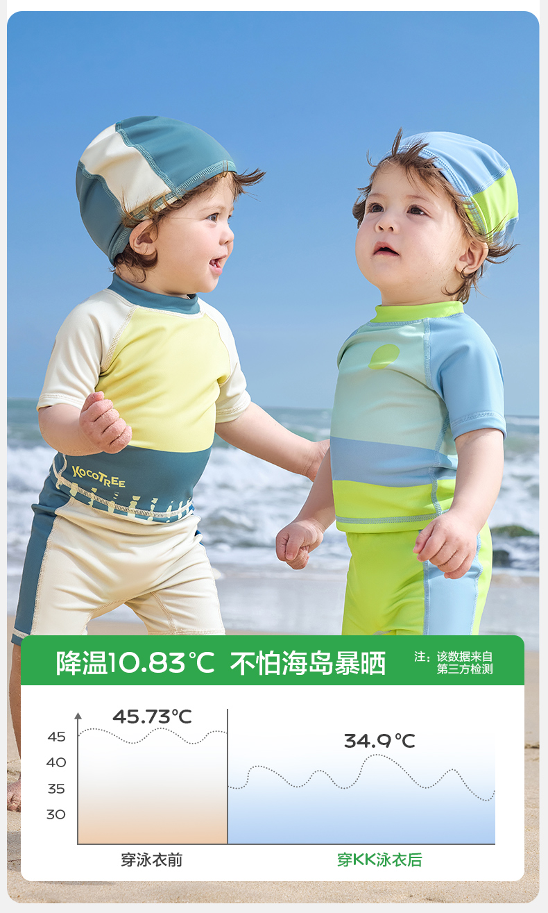 KK树婴儿泳衣男童女宝分体短袖游泳衣宝宝海边沙滩防晒A类泳装涂鸦艺术家分体泳衣