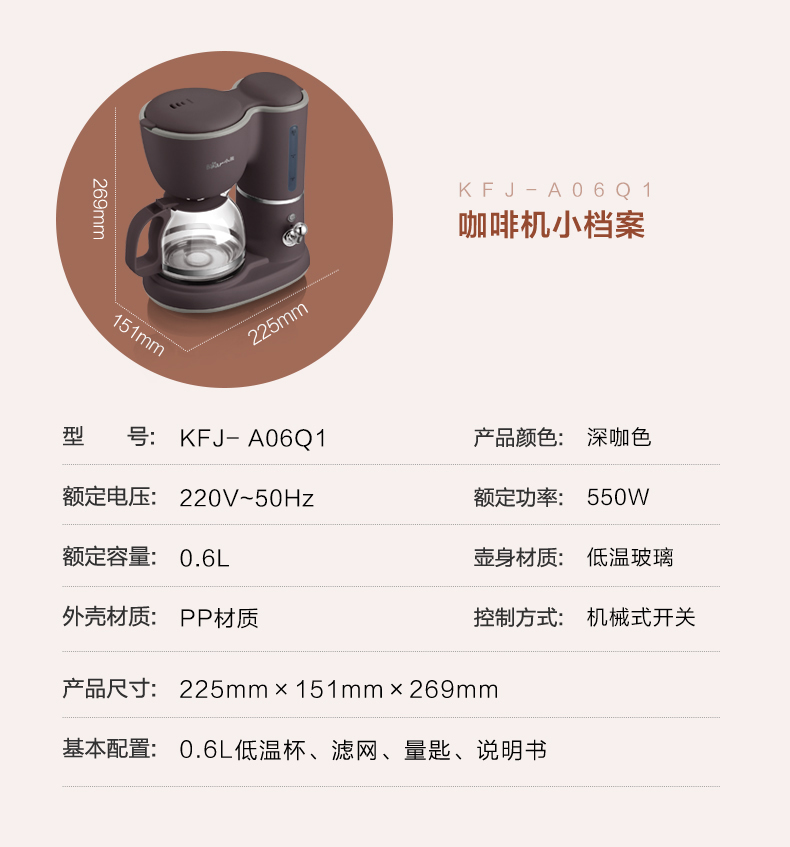 小熊咖啡机KFJ-A06Q1【分仓直发,72小时发货,周末节假日不发货】