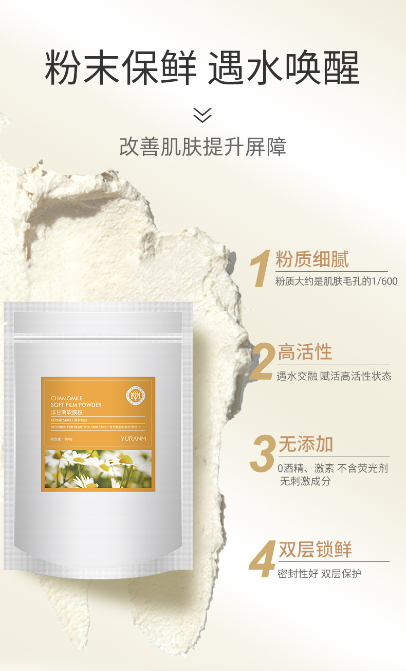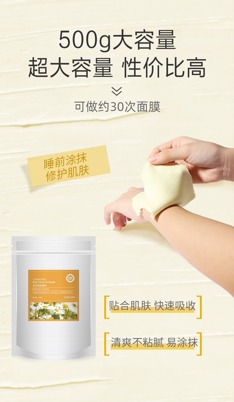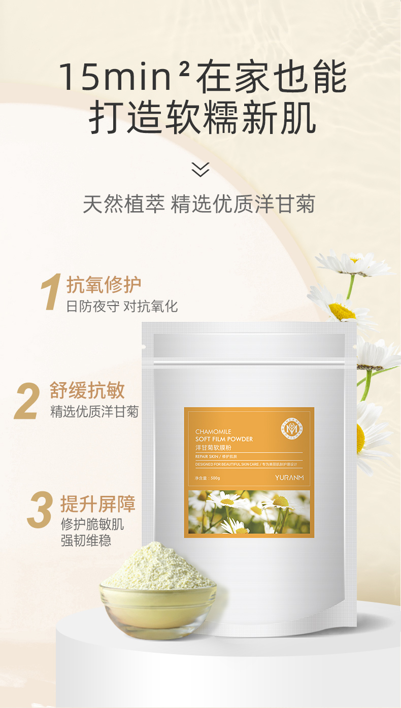 【69元3件、99元5件】洋甘菊软膜粉面膜500g舒缓敏感镇静皮肤