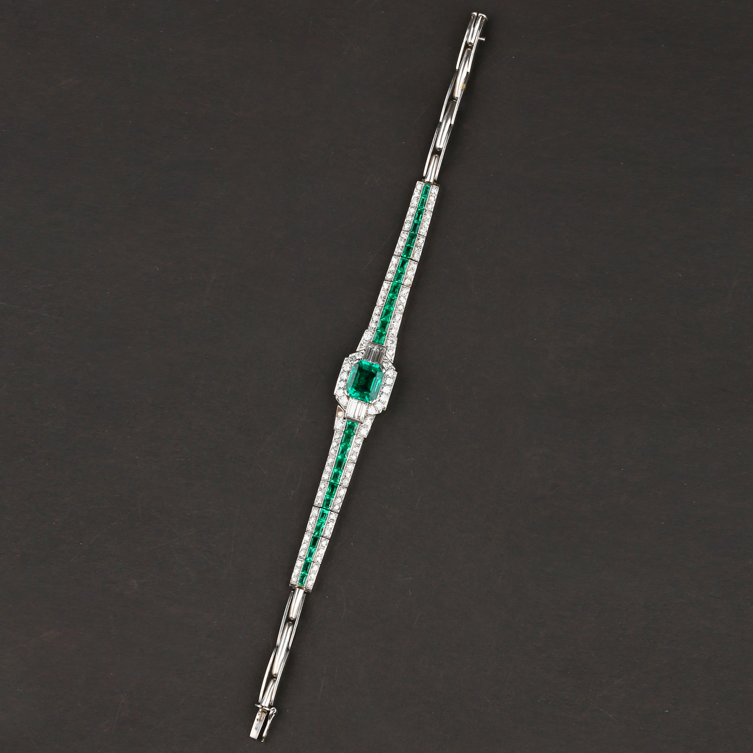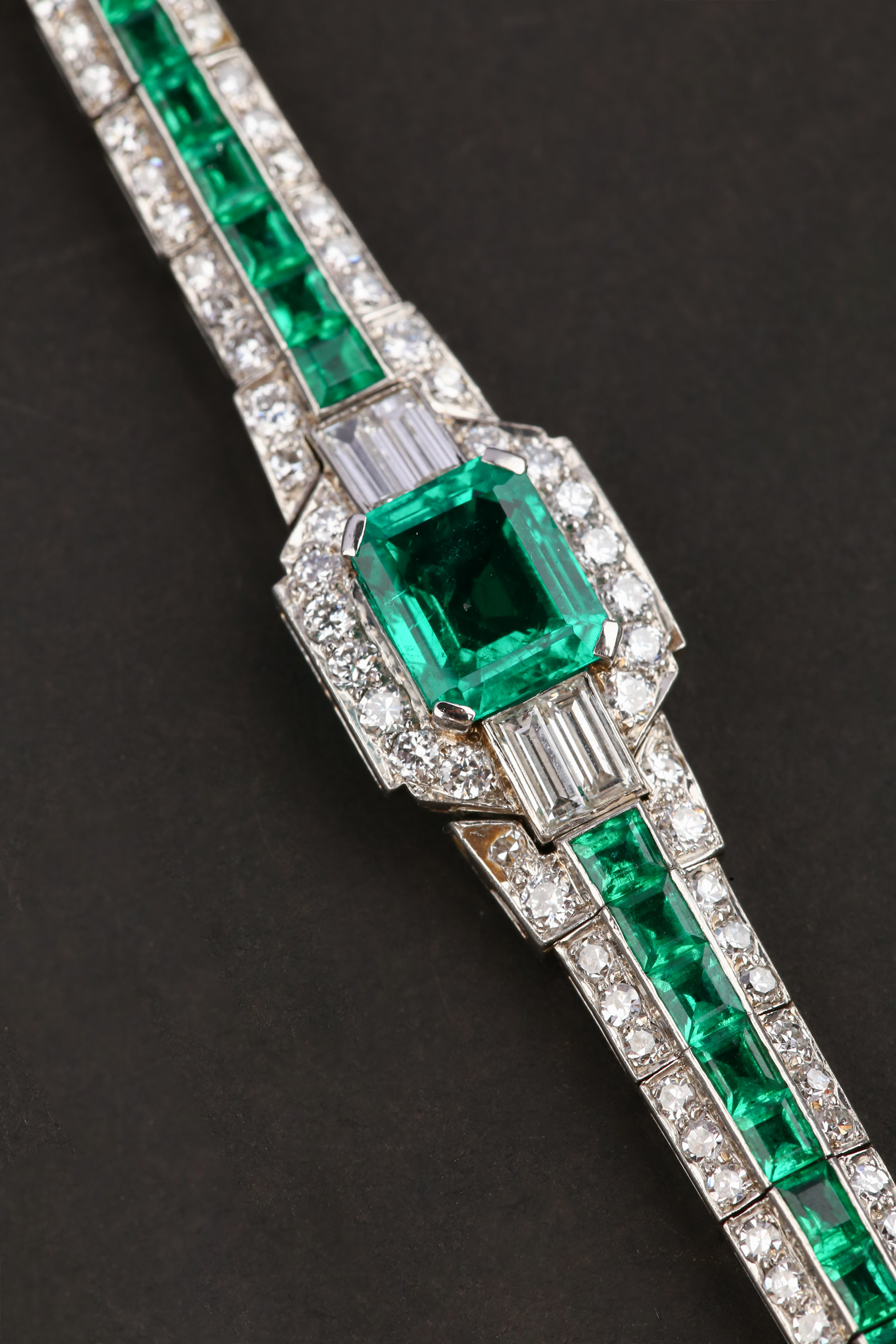 独角鹿西洋古董珠宝首饰欧洲铂金镶嵌钻石哥伦比亚祖母绿手链手镯