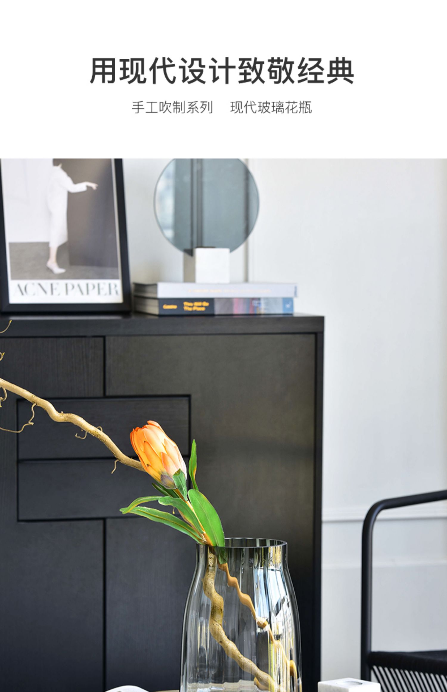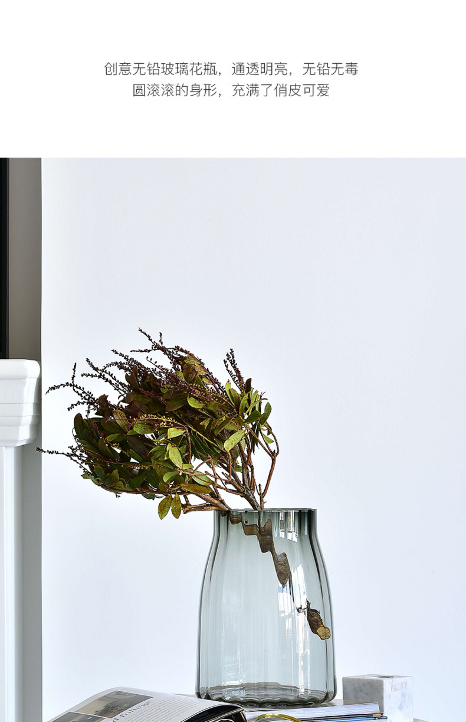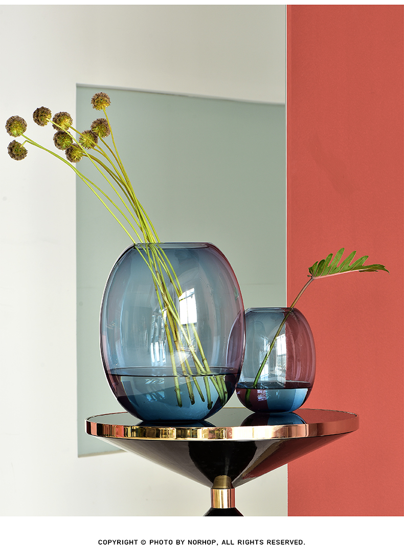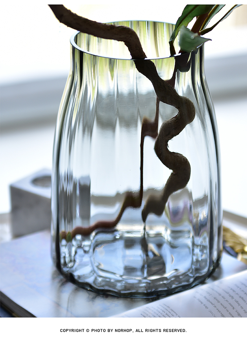 碧轩现代简约透明玻璃花瓶摆件 欧式轻奢玻璃客厅插花花瓶餐厅装饰品
