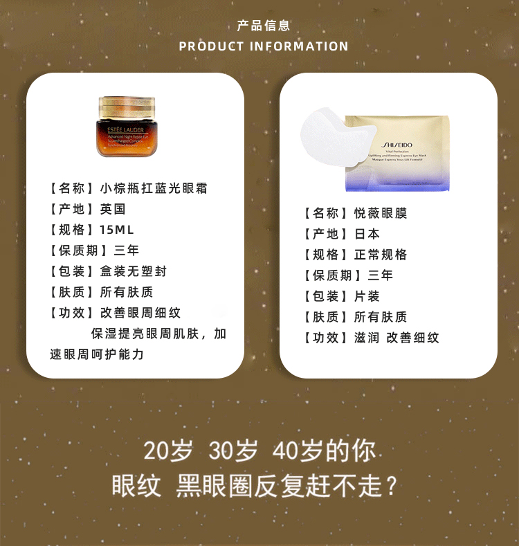 (Shiseido)雅诗兰黛小棕瓶特润精华眼霜15ml熬夜蓝光眼霜+资生堂眼膜1片