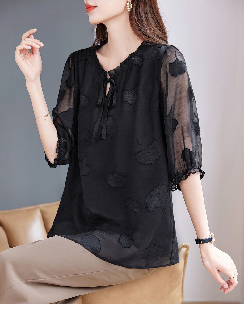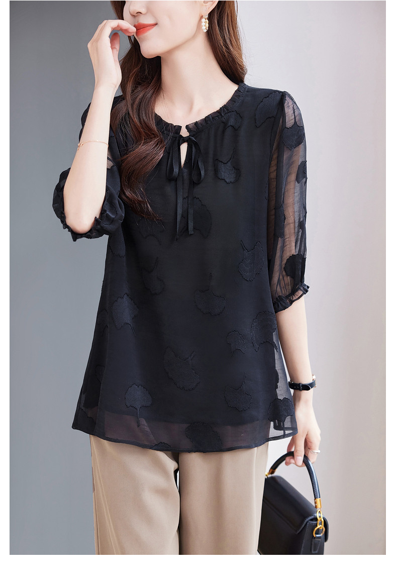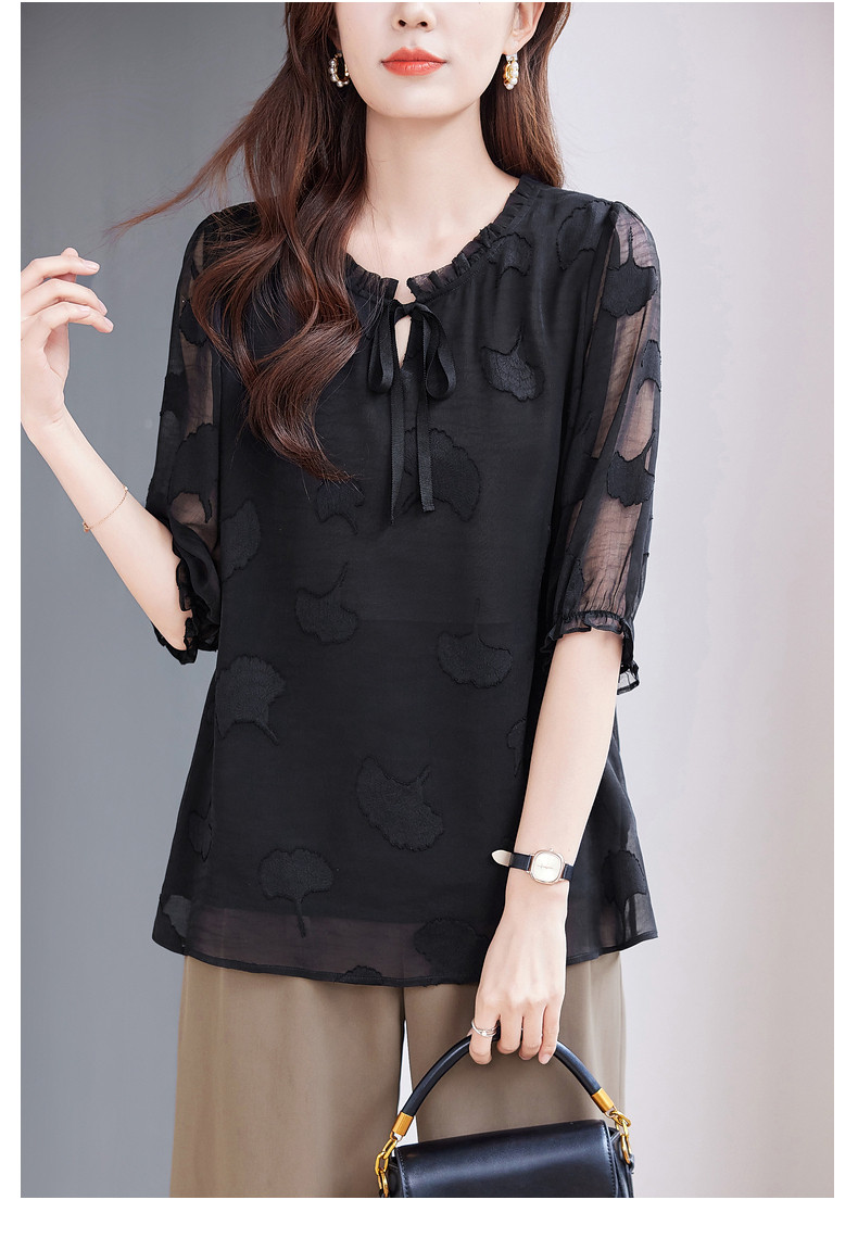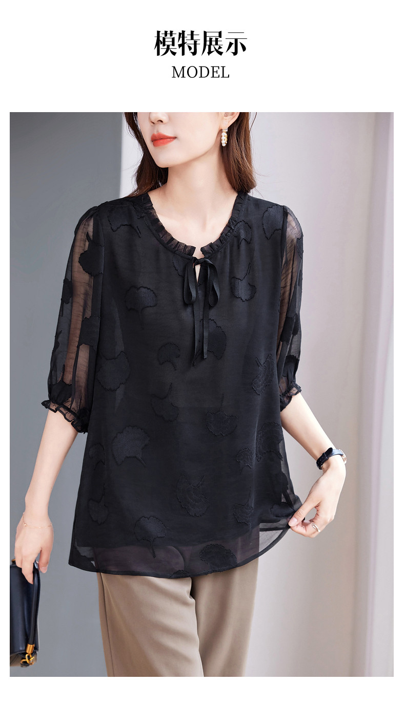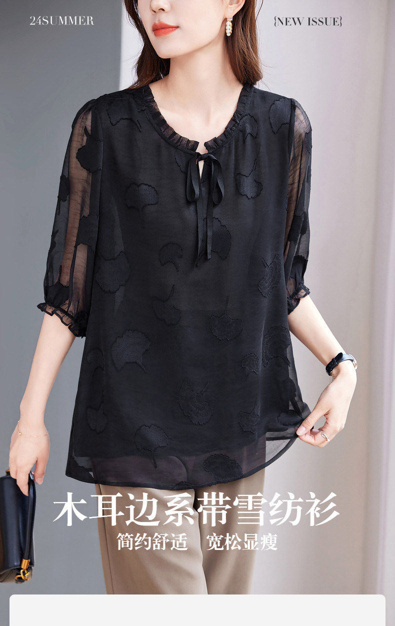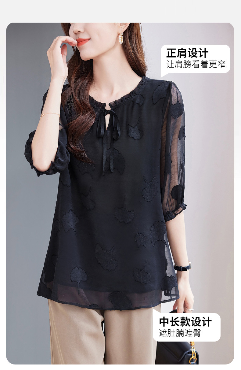 大码七分袖雪纺衫夏2026新款高端女装黑色上衣宽松洋气中袖小衫女