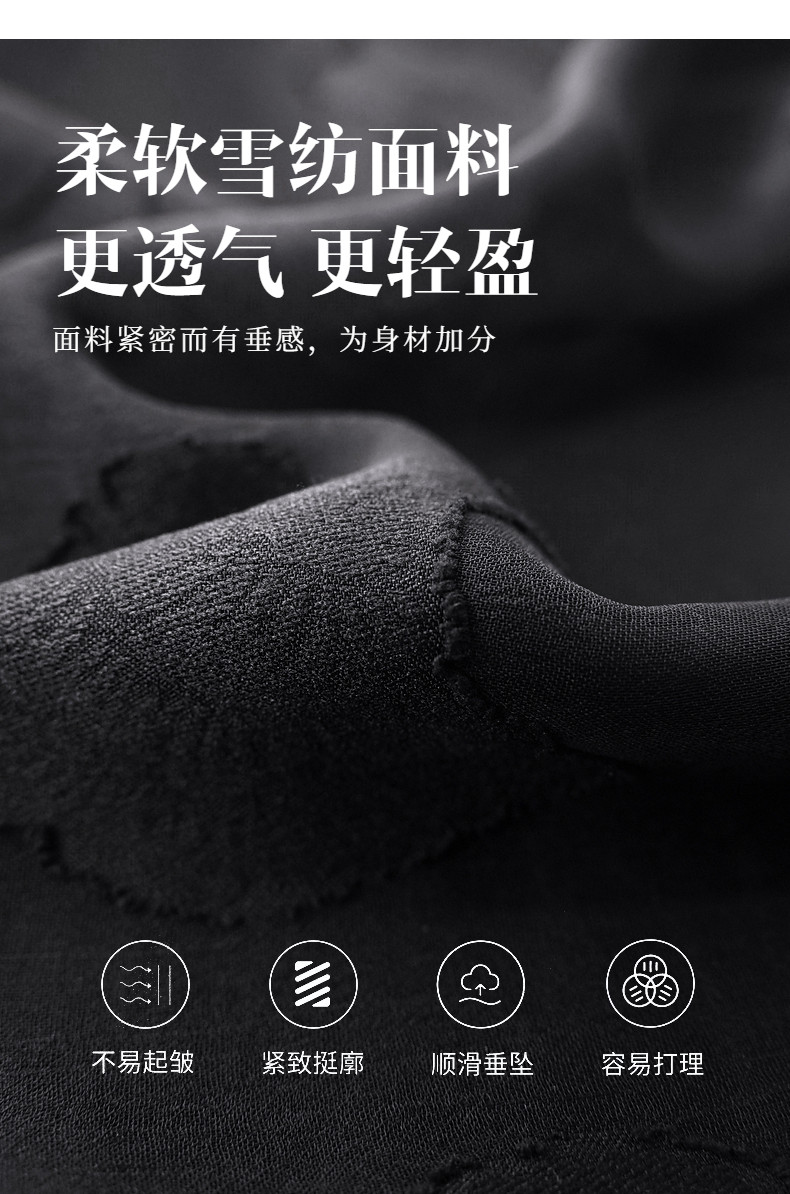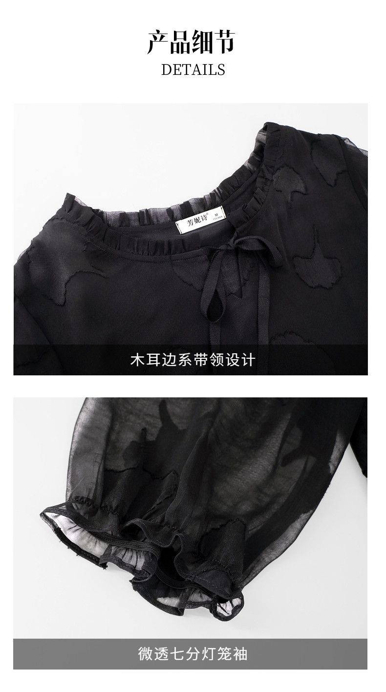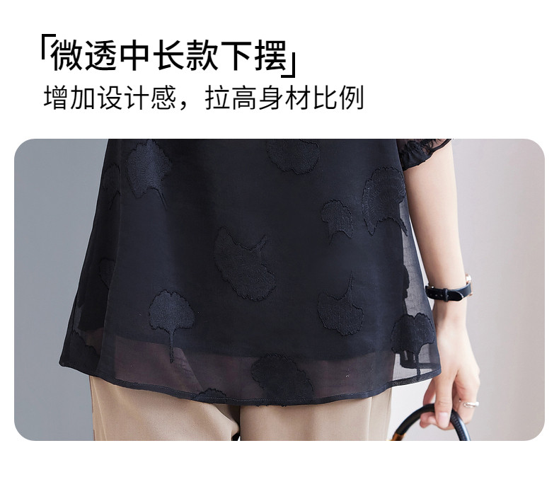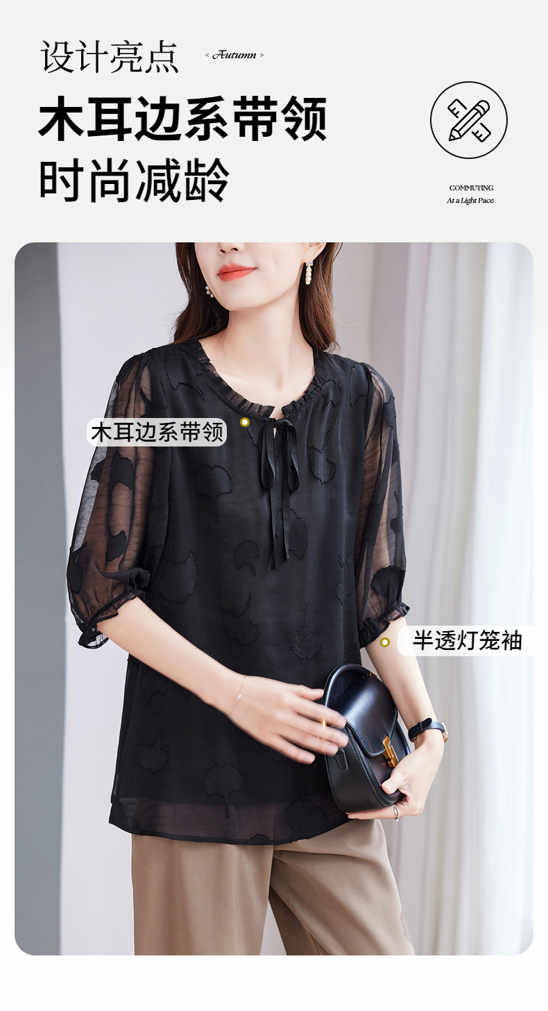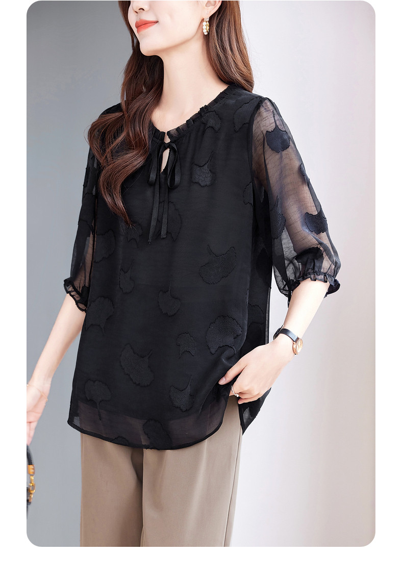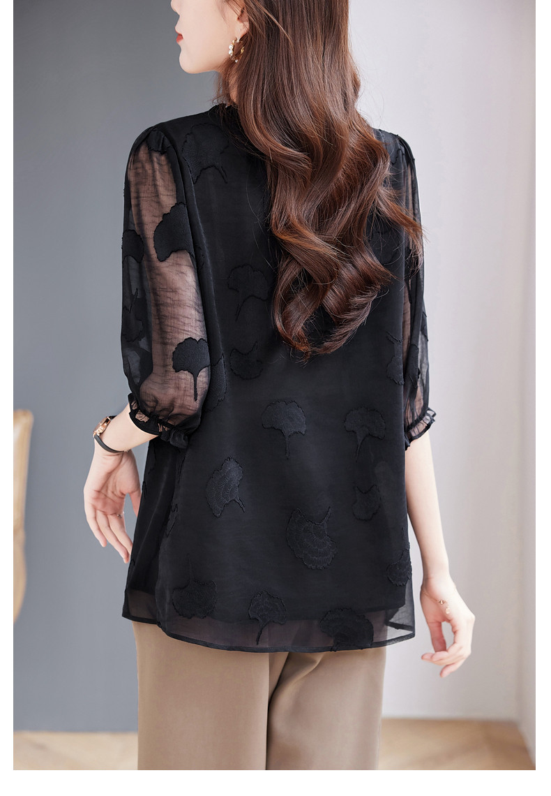 大码七分袖雪纺衫夏2026新款高端女装黑色上衣宽松洋气中袖小衫女